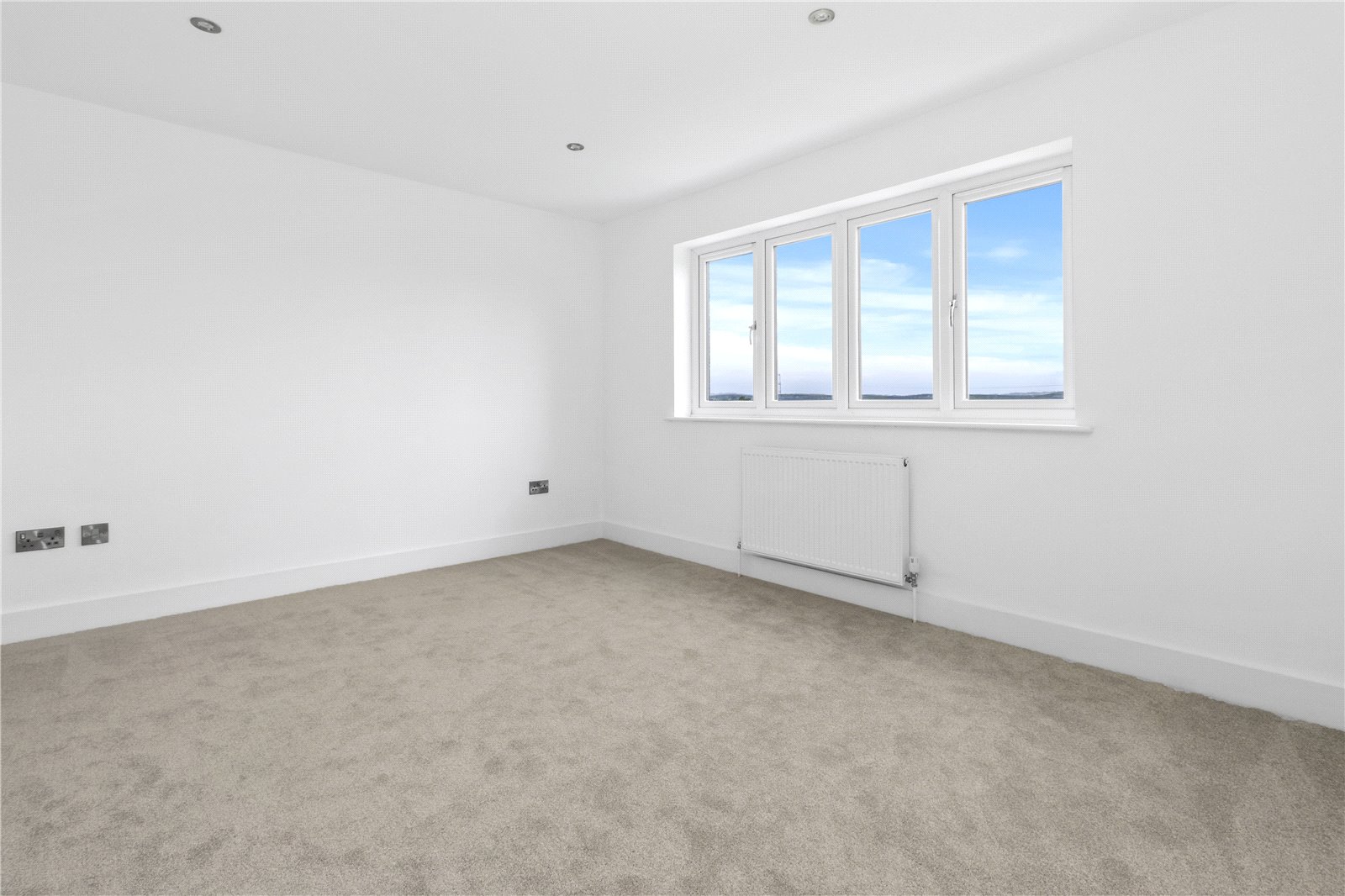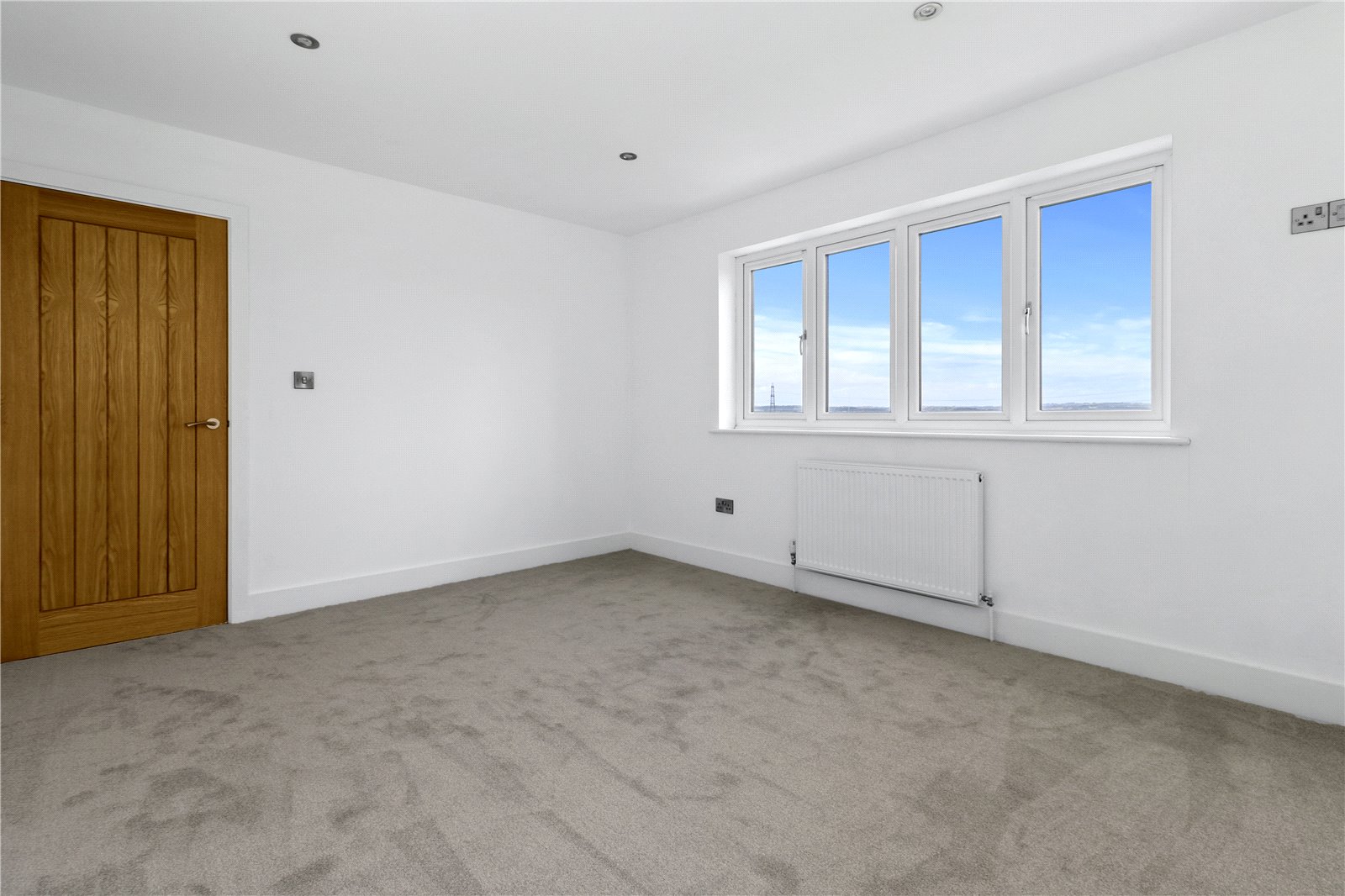 BEDROOM TWO: 13 Feet 7 Inches x 11 Feet. A double sized room with carpeted floor, radiator, double glazed powder coated window with a wonderful aspect over the rear gardens adjoining open farmland and with beautiful far-reaching views beyond.