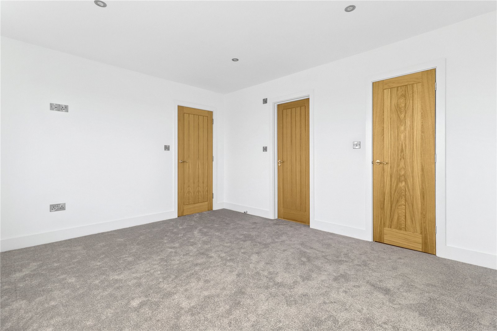 DRESSING ROOM FOR BEDROOM ONE. A double sized room with carpeted flooring, twin bespoke fitted wardrobes either side.