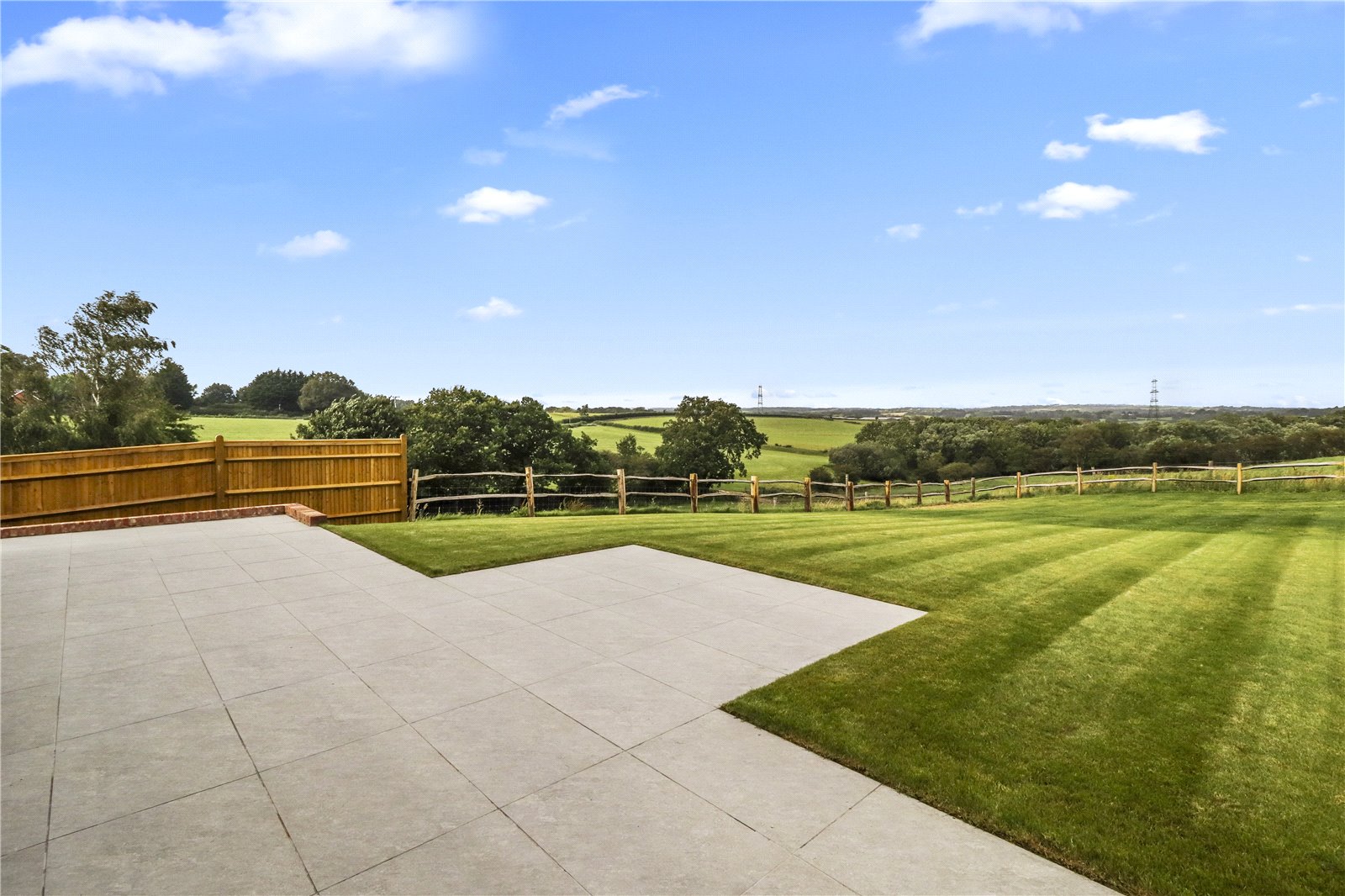 OUTSIDE REAR AREA: The substantial sized rear garden has a side access pathway and backs directly onto open farmland with beautiful uninterrupted views beyond. The total length of the rear garden is 108 Feet and 52 Feet wide. Comprising of a paved sun terrace with level lawned areas beyond.