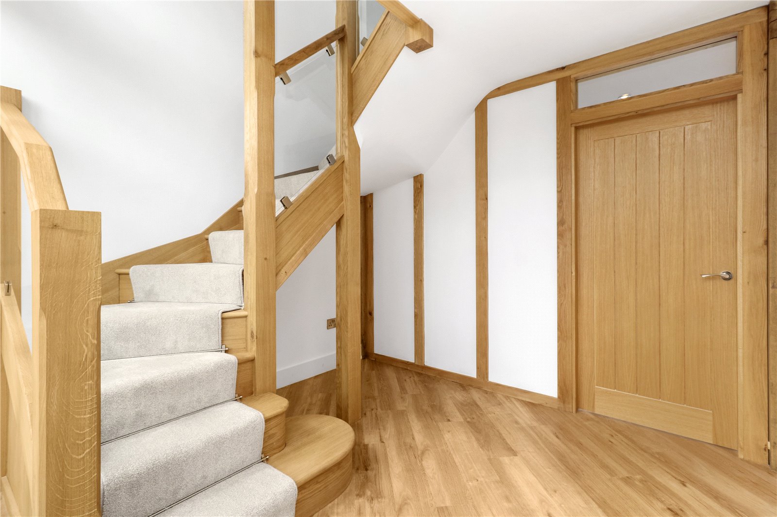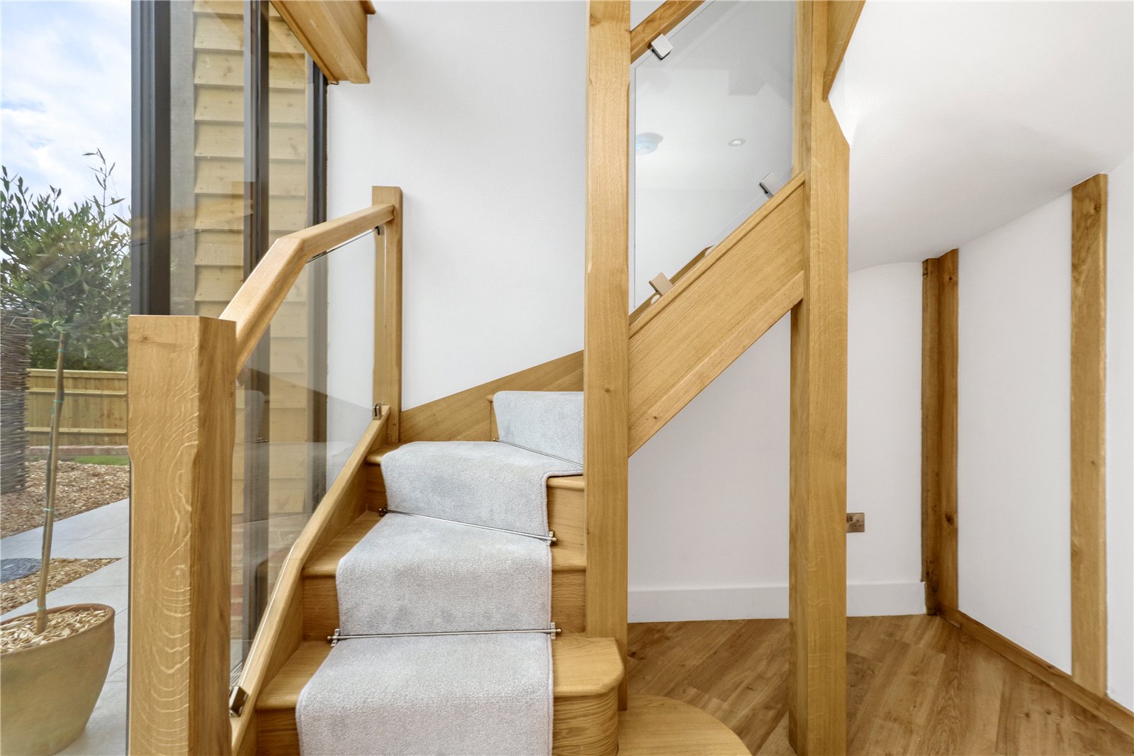SECOND FLOOR ACCOMMODATION: Further continuation of the bespoke oak and heavy glazed contemporary staircase leading to the second-floor landing.