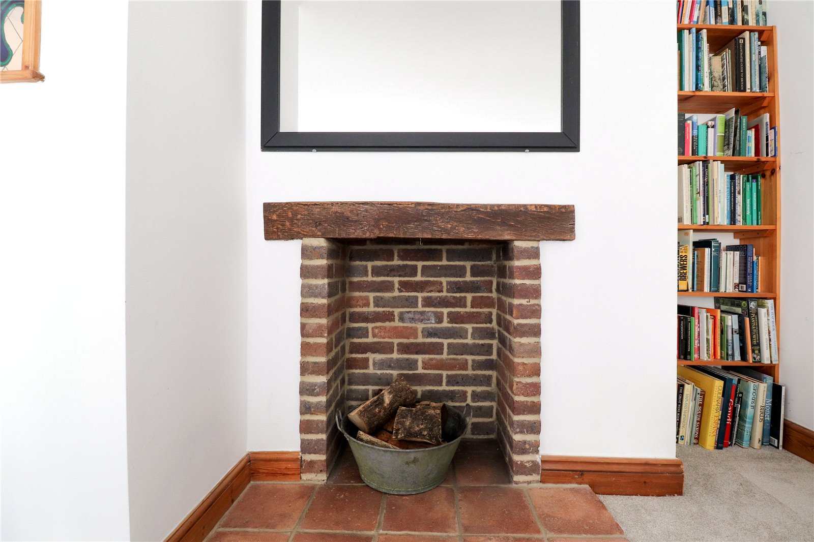 BEDROOM TWO or SITTING ROOM: Also used as a large second reception room / sitting room. A light and characterful double sized room with bay window, recessed old brick fireplace presently used for display and storage, radiator, shelving and window with aspect over the front picturesque town of Lewes.