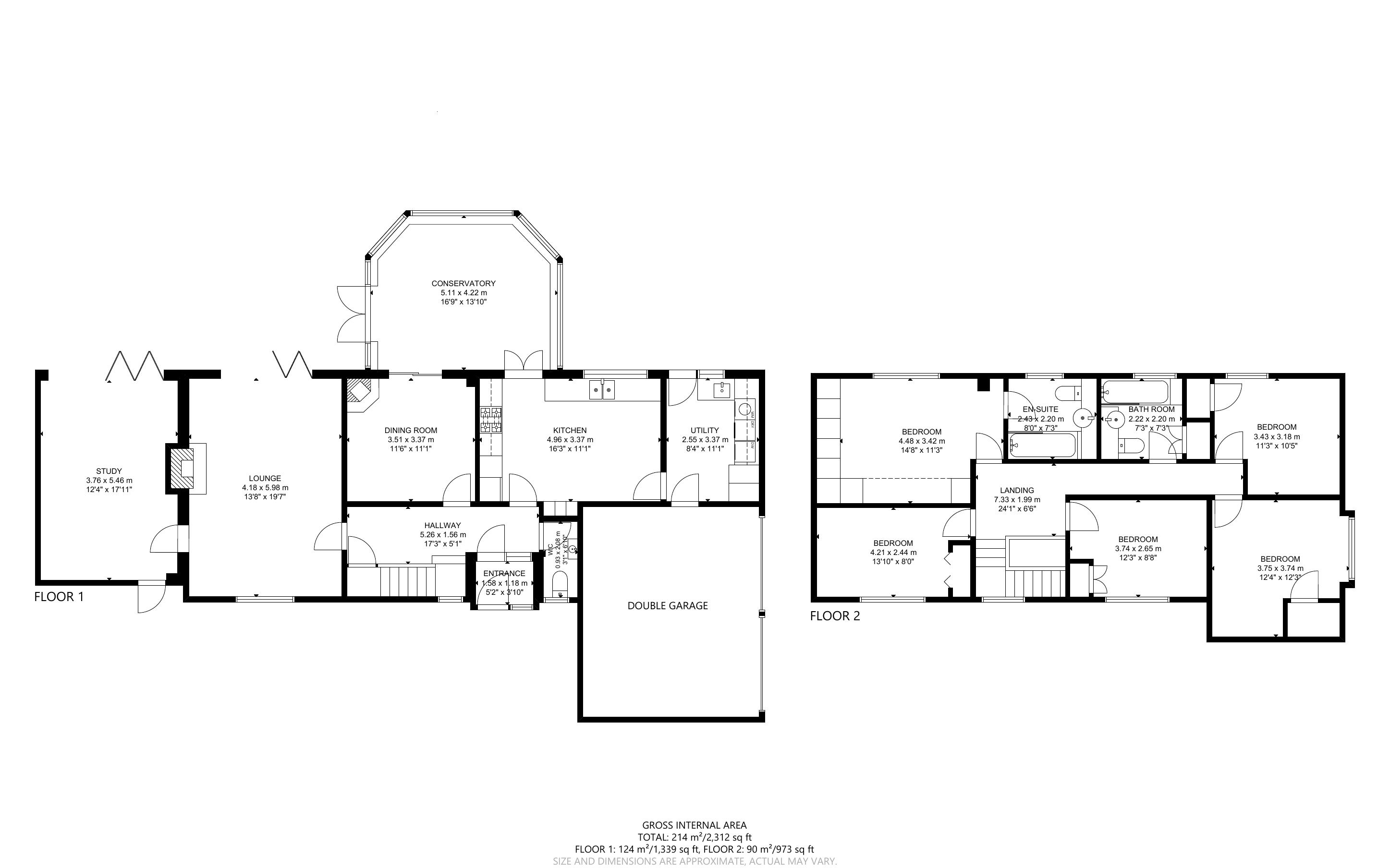 FIRST FLOOR LANDING: With coved ceilings, ceiling light, galleried area with aspect through double glazed window to the front grounds, radiator, hatch to large loft space which may be considered subject to planning for further accommodation on a third level. Doors leading off to all five bedrooms and a family bathroom / shower room.