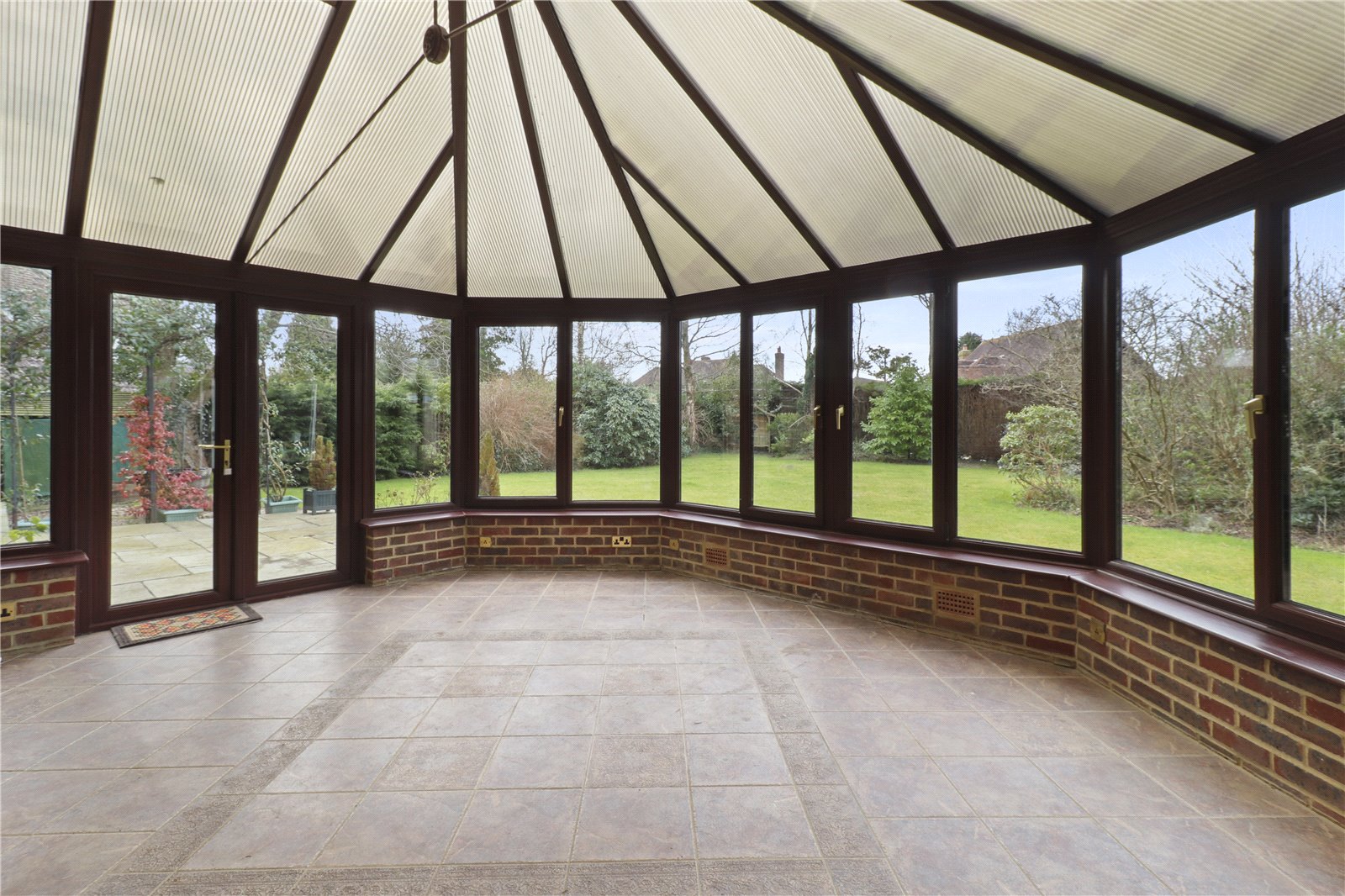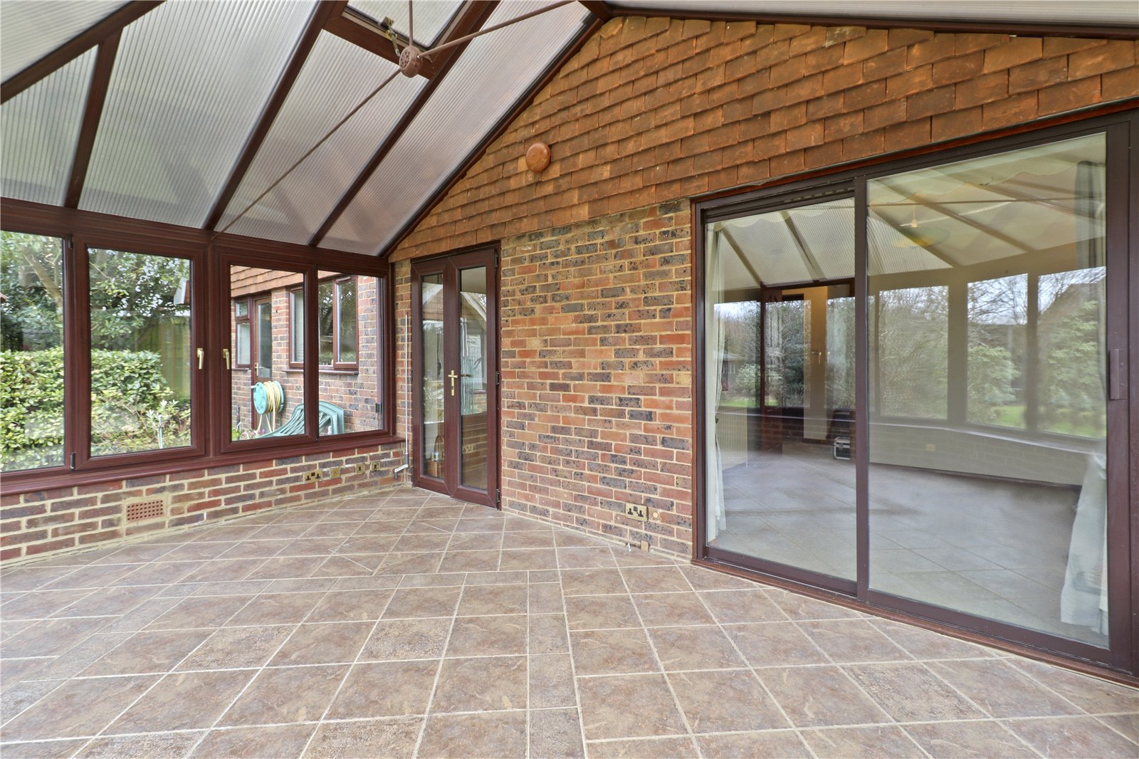 CONSERVATORY: Also, able to be approached from the kitchen and from the rear garden. With tiled floors, low brick sides with double glazed sides above and a vaulted translucent ceiling above, double glazed doors to rear sun terrace, panoramic view of the rear mature attractive generous sized gardens.