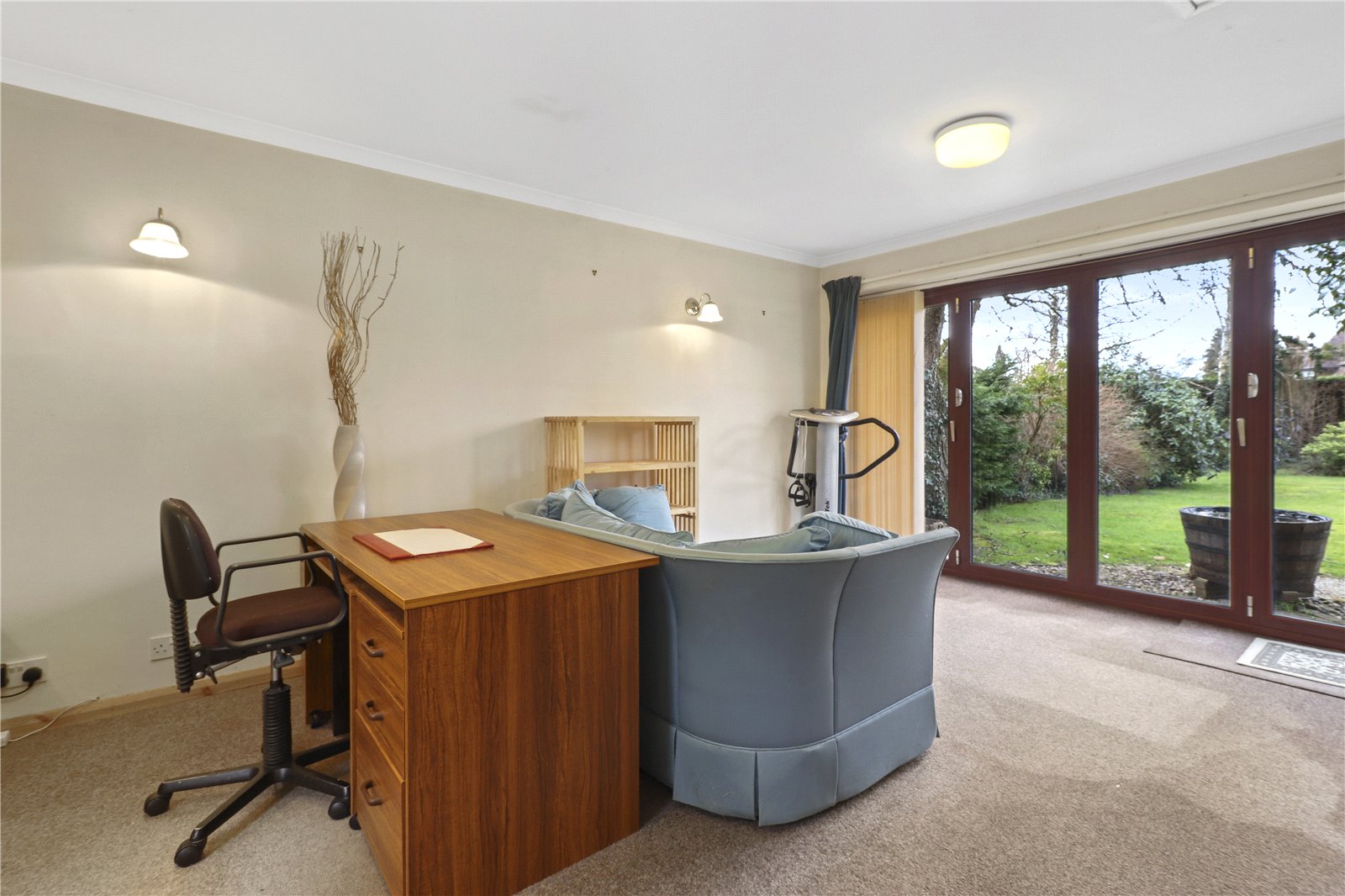 STUDY / GAMES ROOM: Approached by the secret adjoining door from the sitting room and also from the rear garden through the double-glazed fully folding doors, as well as from an additional front door. This room is double aspect with coved ceilings, ceiling and wall lights, radiators, ceiling hatch to loft area.