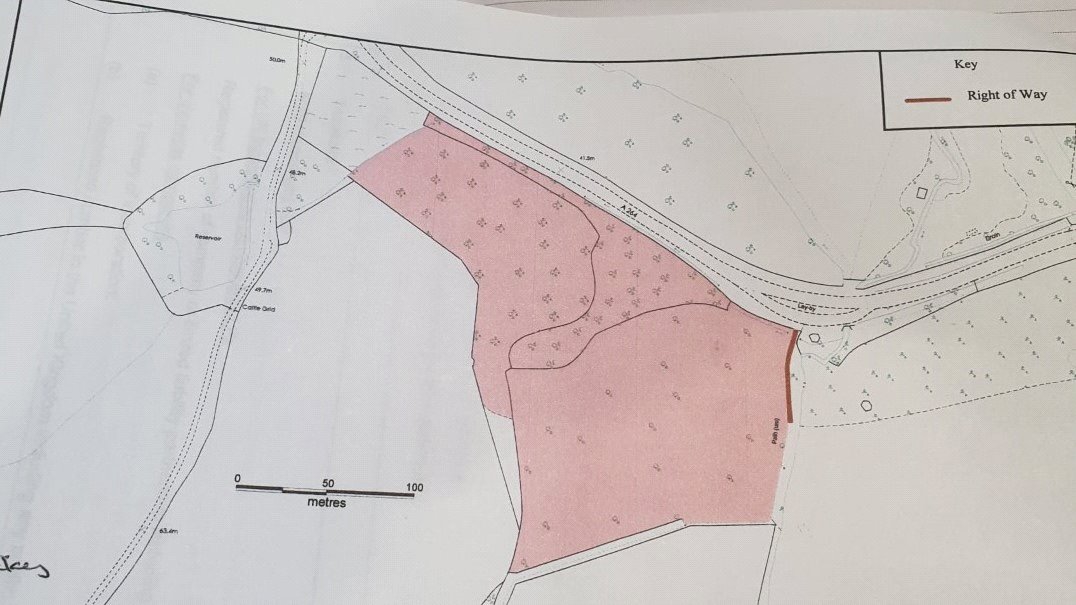 SPECIAL NOTE: Although there is a public footpath that cuts through only a small section of low corner area of the woodlands bottom boundary, the land is predominantly not affected by any rights of way.