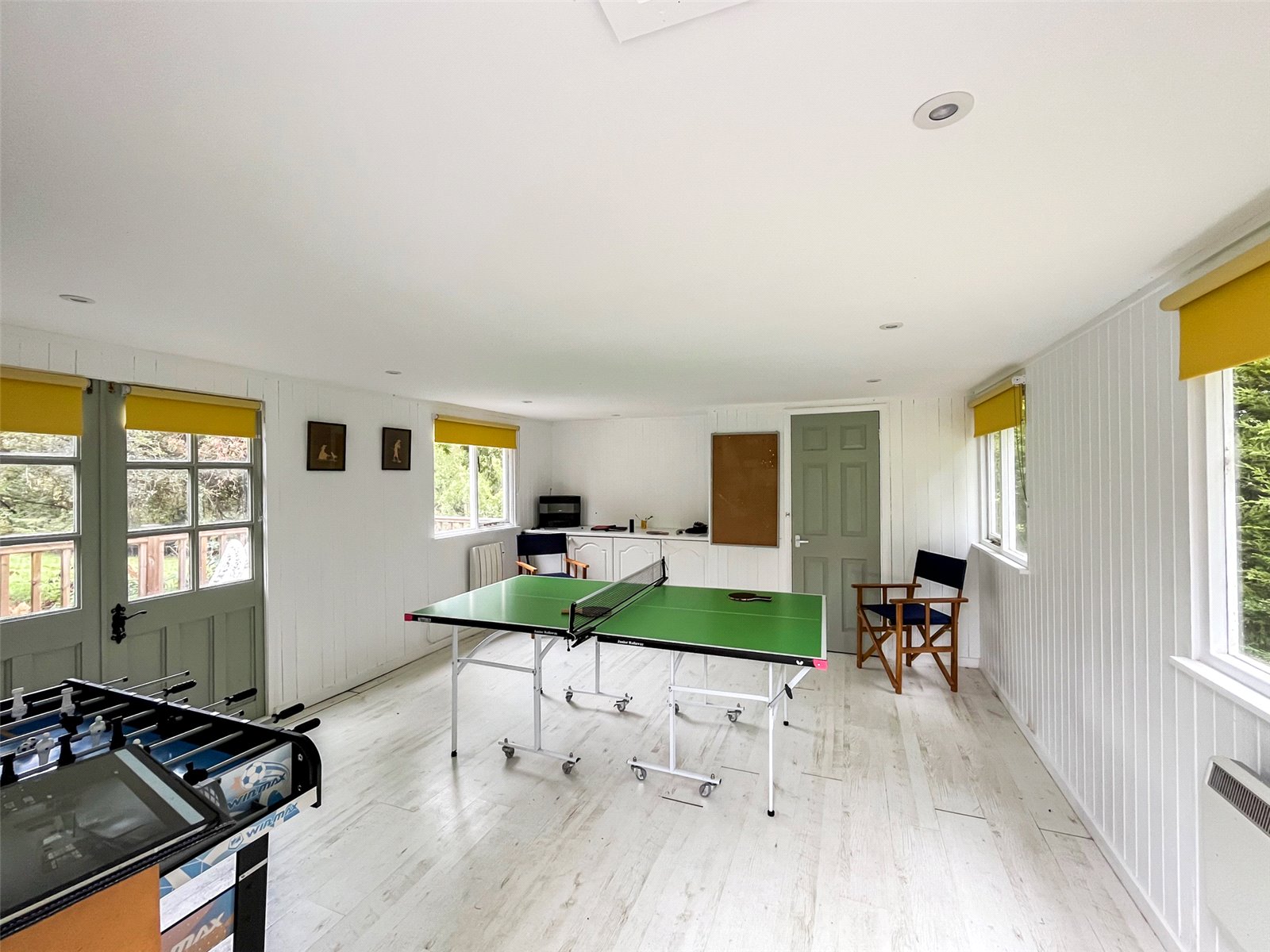 GAMES ROOM: A further detached and refurbished wooden building with space for a table tennis table and other lounging areas with aspect over the garden and adjoining countryside.