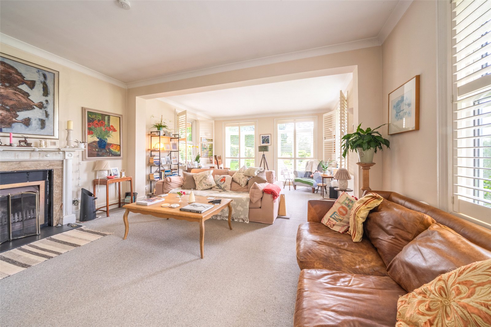 FAMILY ROOM: A double aspect room that is naturally bright with a feature character fireplace, attractive polished wooden floors, feature character ceiling, radiator, further door leading to the further hallway, sash windows with aspect to the front garden and driveway, further sash window with aspect over the side garden and wonderful far reaching rural views beyond.