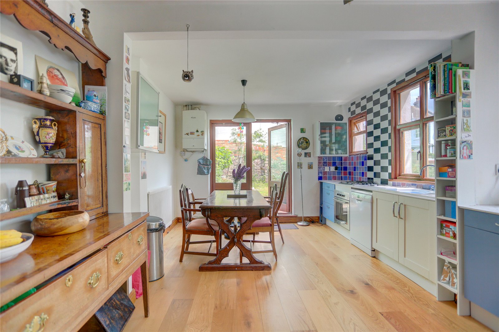 The kitchen/dining room is the true heart of the home, a fantastic space for entertaining guests but also a brilliant area to gather with the children for some recreation time/arts. The French doors open to an attractive mature garden and provide ventilation in summer. The property boasts a very versatile layout and offers tremendous flexibility in how you use the plentiful rooms on offer. All rooms in this expansive end-of-terrace property feature large double-glazed windows making for a wonderfully light and capacious home.