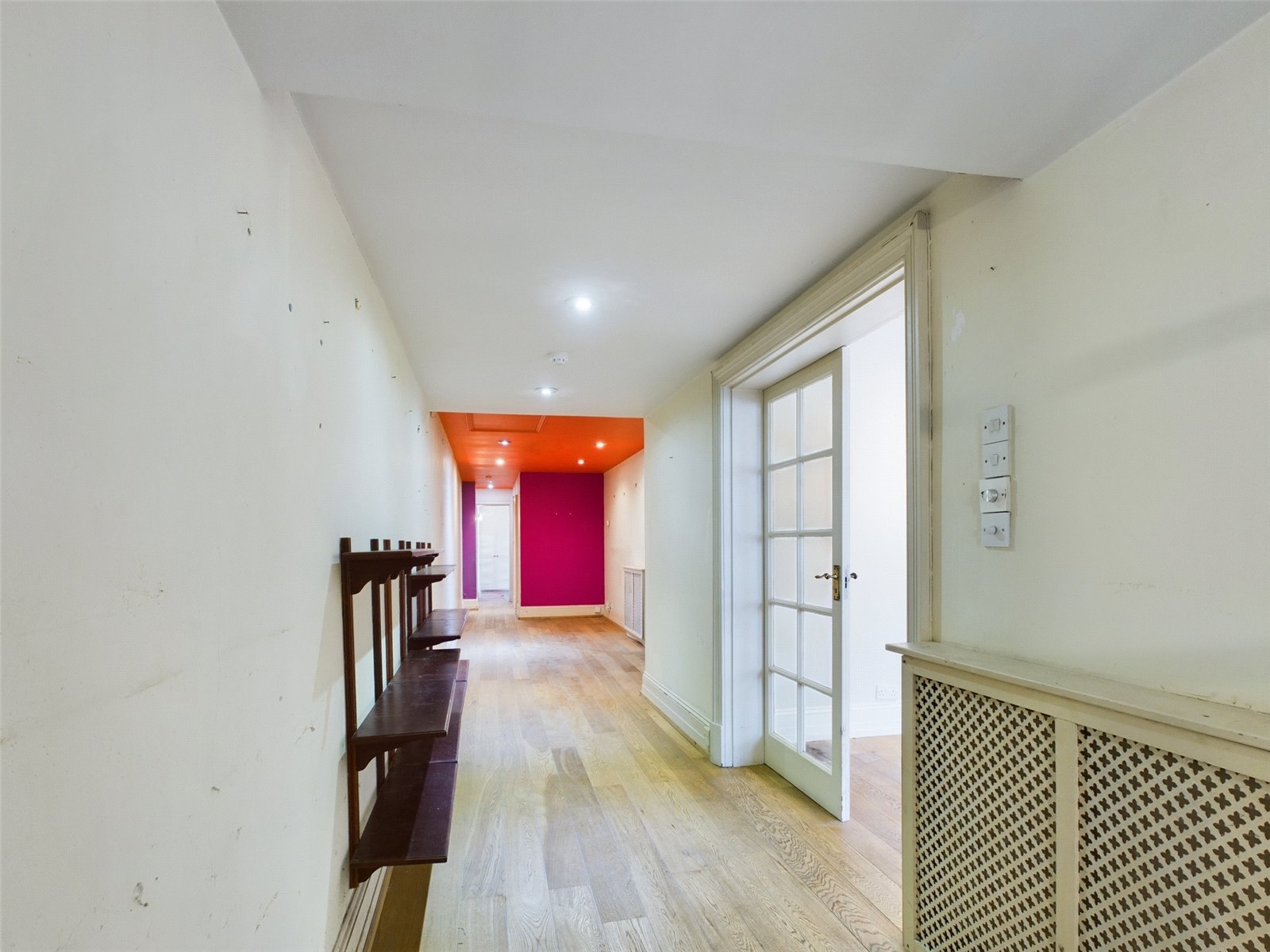 Upon entrance, there is ample storage and a substantial, versatile hallway offering independent access to the majority of rooms. There is a sizeable reception room with a feature fireplace and two large south-facing mullion sash windows which enable lots of natural light to flood the space. The two double bedrooms are located further into the apartment, the largest room boasting an ensuite bathroom and built-in cupboard space. There is an additional shower room down the hall.