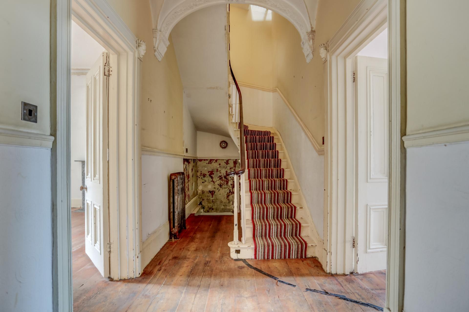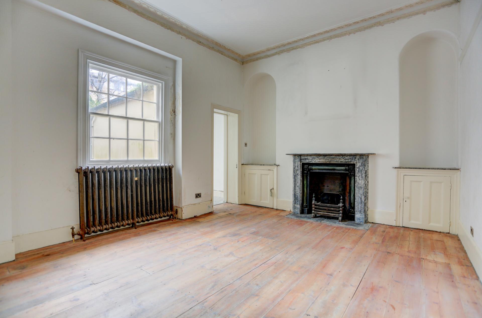 The property showcases classic Regency details, including intricate cornicing, decorative picture rails, and elegant fireplaces, providing a strong foundation for restoration and enhancement.