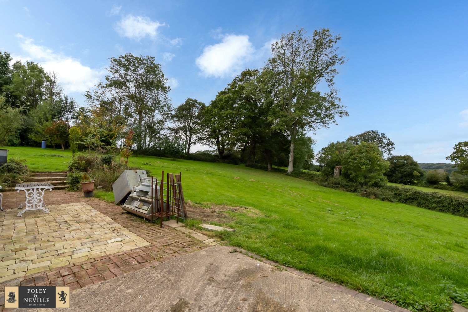OUTSIDE: Set within its own gardens and grounds of circa 3.5 acres TBV and backing onto farmland with far reaching views beyond, this desirable and fairly large detached five