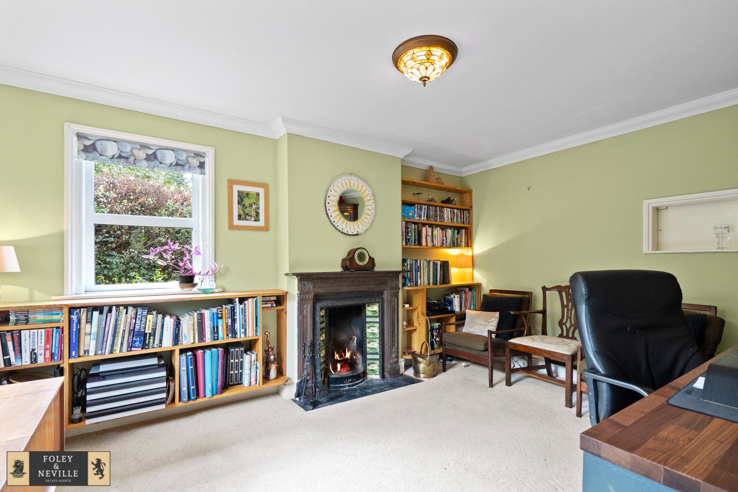 STUDY / FAMILY ROOM: With radiator, old feature fireplace, coved ceiling and double glazed windows with aspect to front and side.