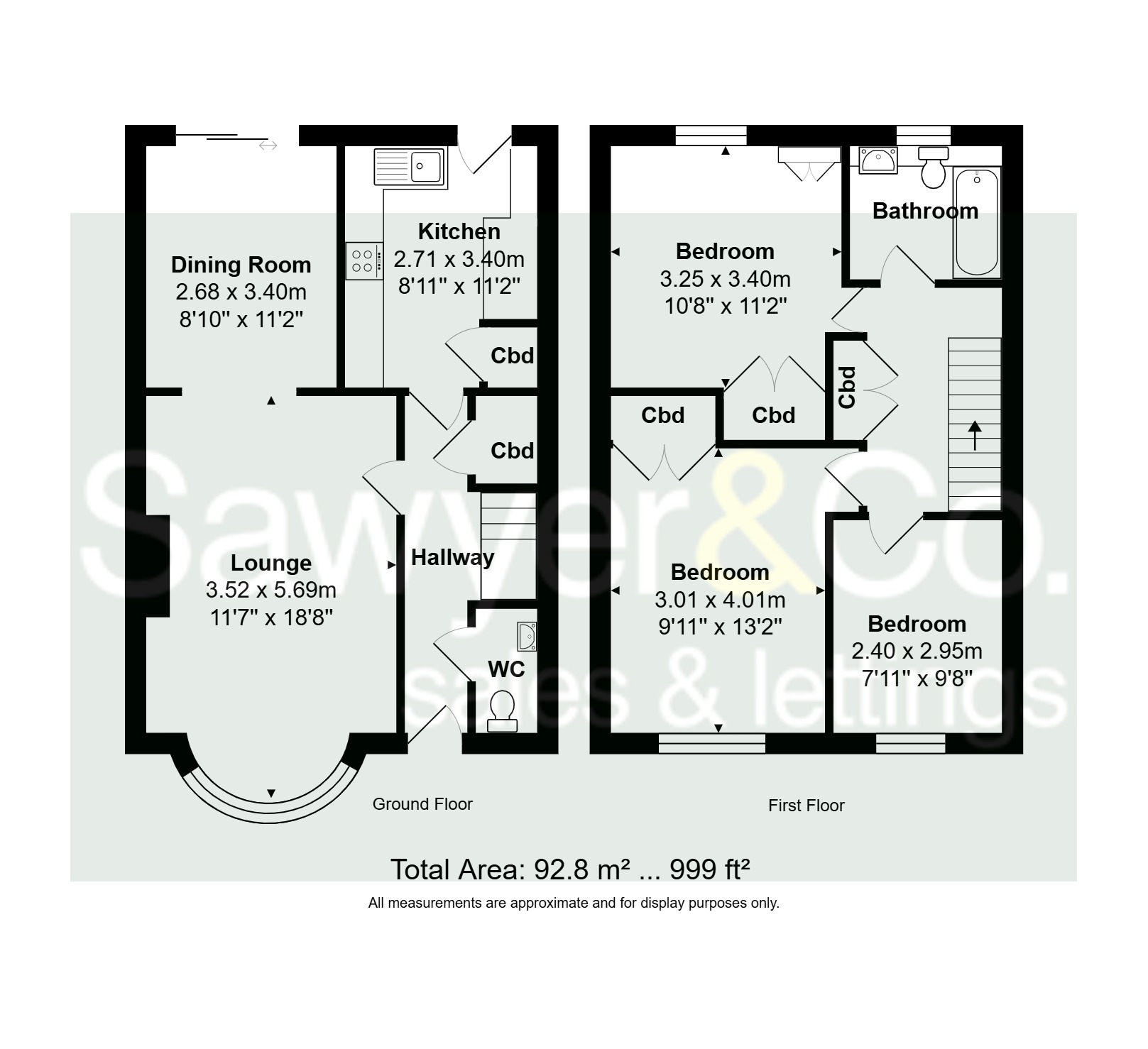 This spacious family home is a very good size and enjoys a traditional layout. On the ground floor, there is a generously-sized lounge with feature bowed bay window and dining area set behind, a separate fitted kitchen and a conveniently placed w/c. There are three bedrooms with the two largest rooms fitted with handy built-in storage and a family bathroom. The property is set behind a well-kept lawned garden, and has a generous tiered patio garden to the rear.