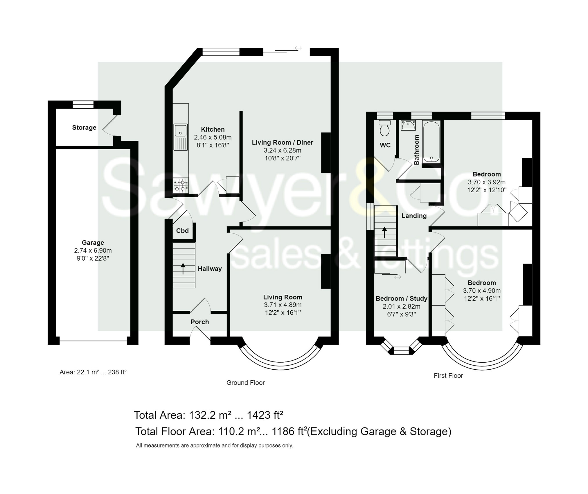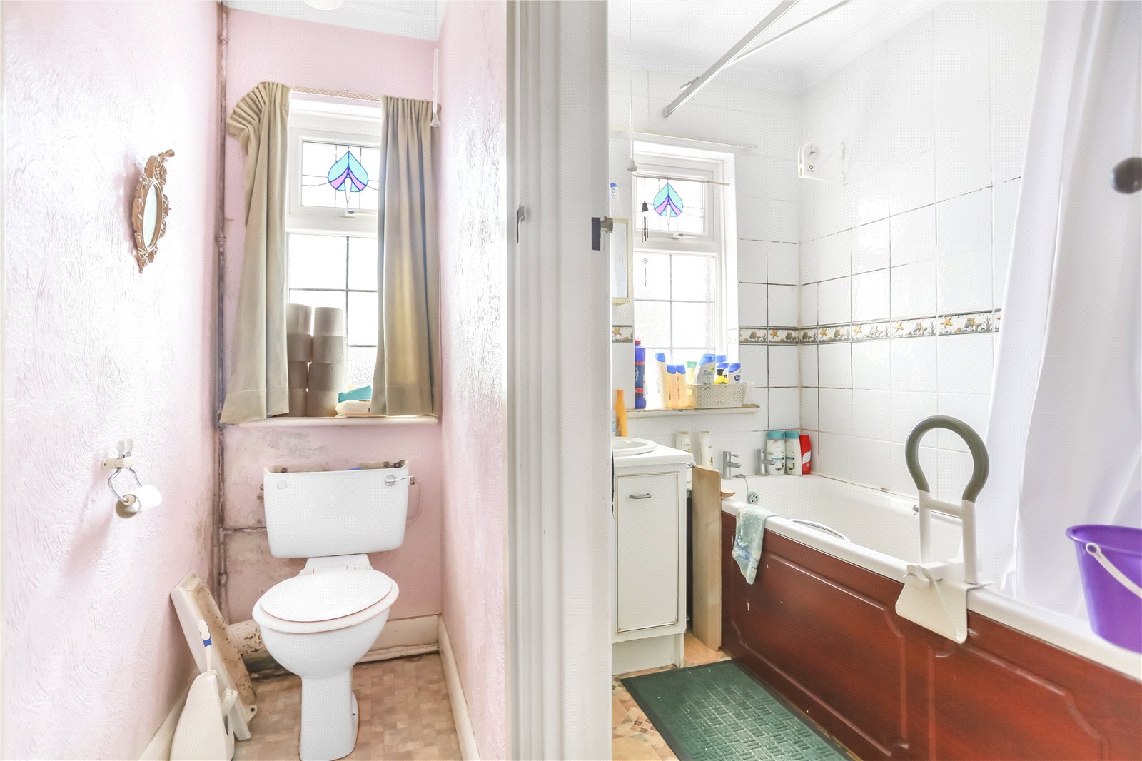 Upstairs, there are two double bedrooms both with built-in storage and one featuring a curved bay window. There is also a third smaller bedroom, bathroom and a separate W/C.