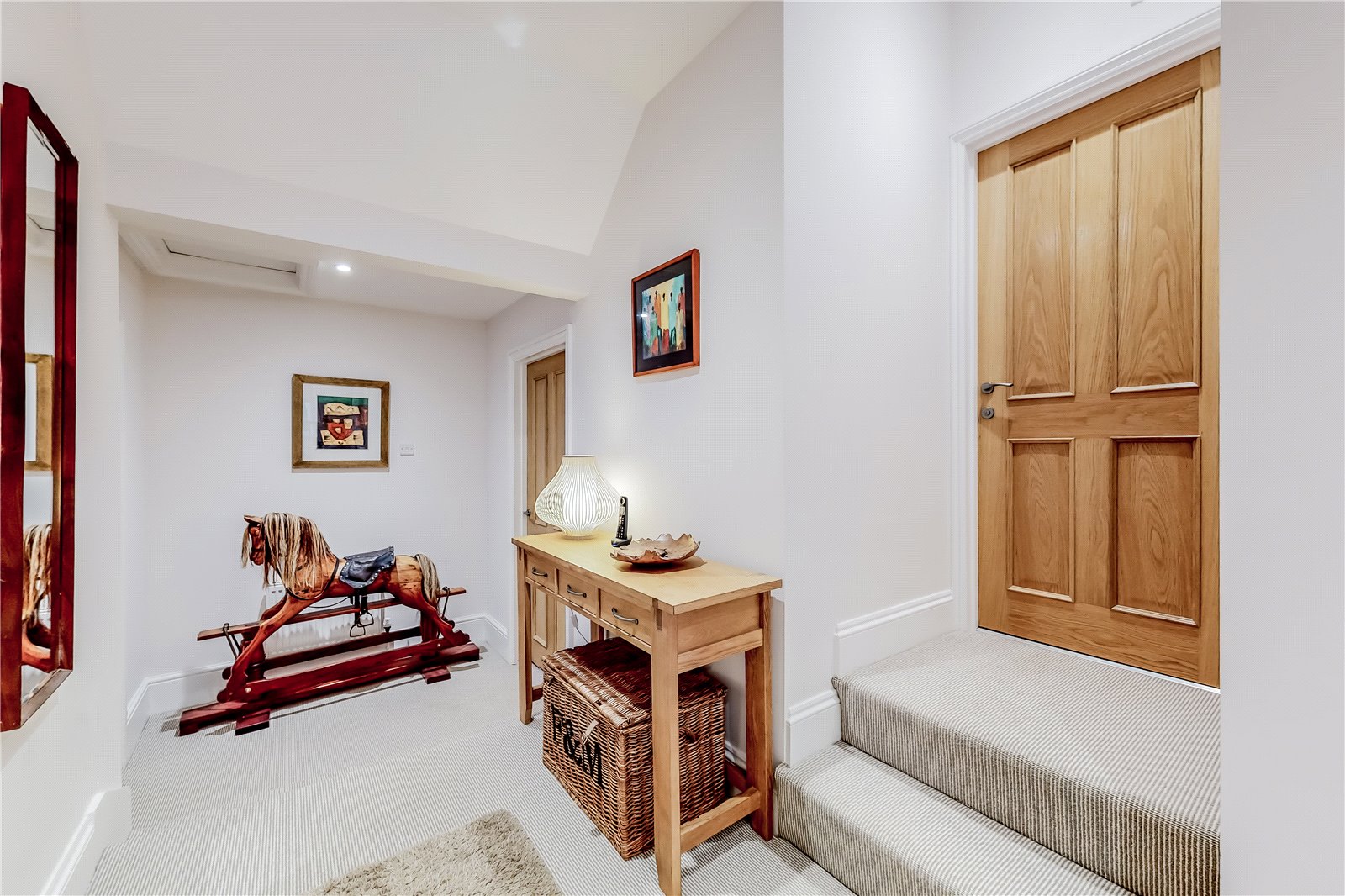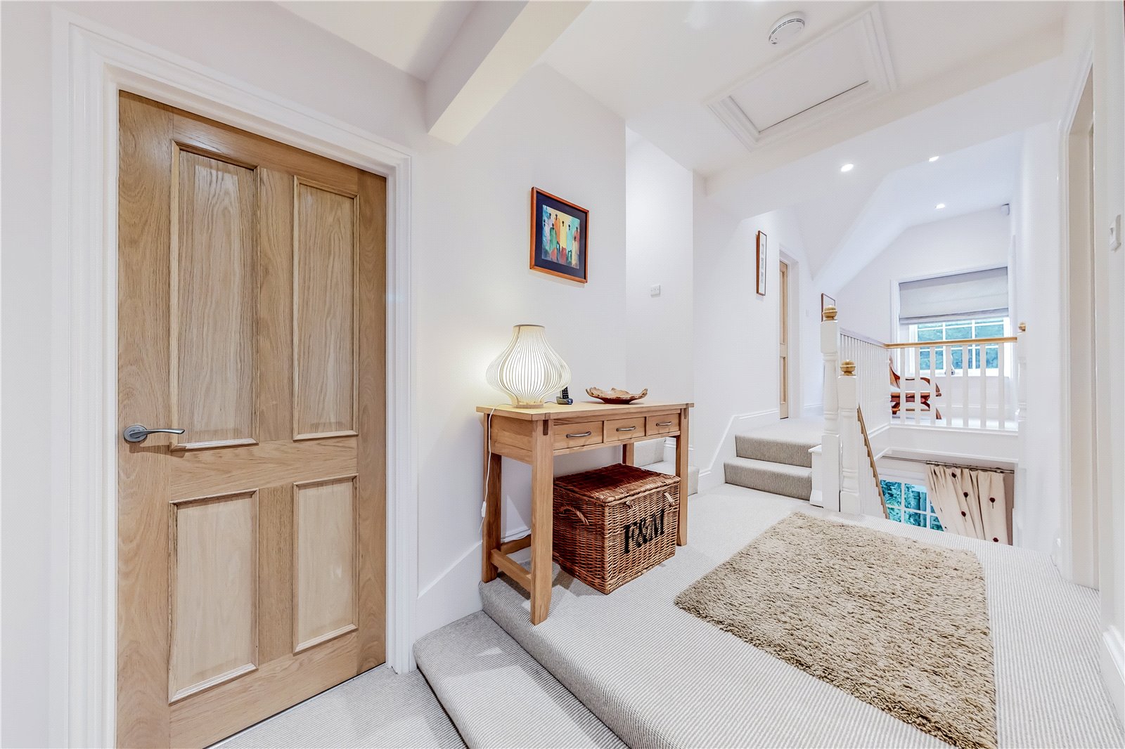 FIRST FLOOR ACCOMMODATION: Staircase from the far end of the reception hall with painted balustrading and light oak handrails leading to the first-floor landing.