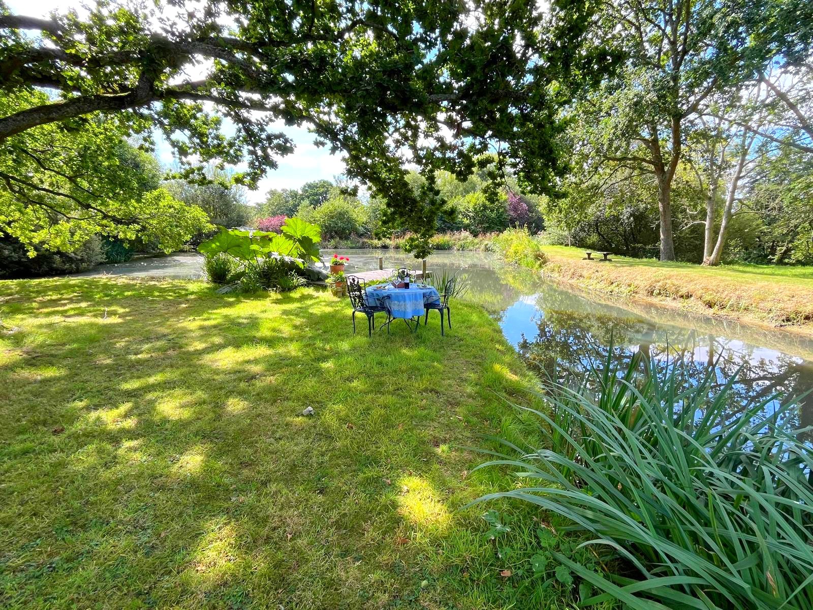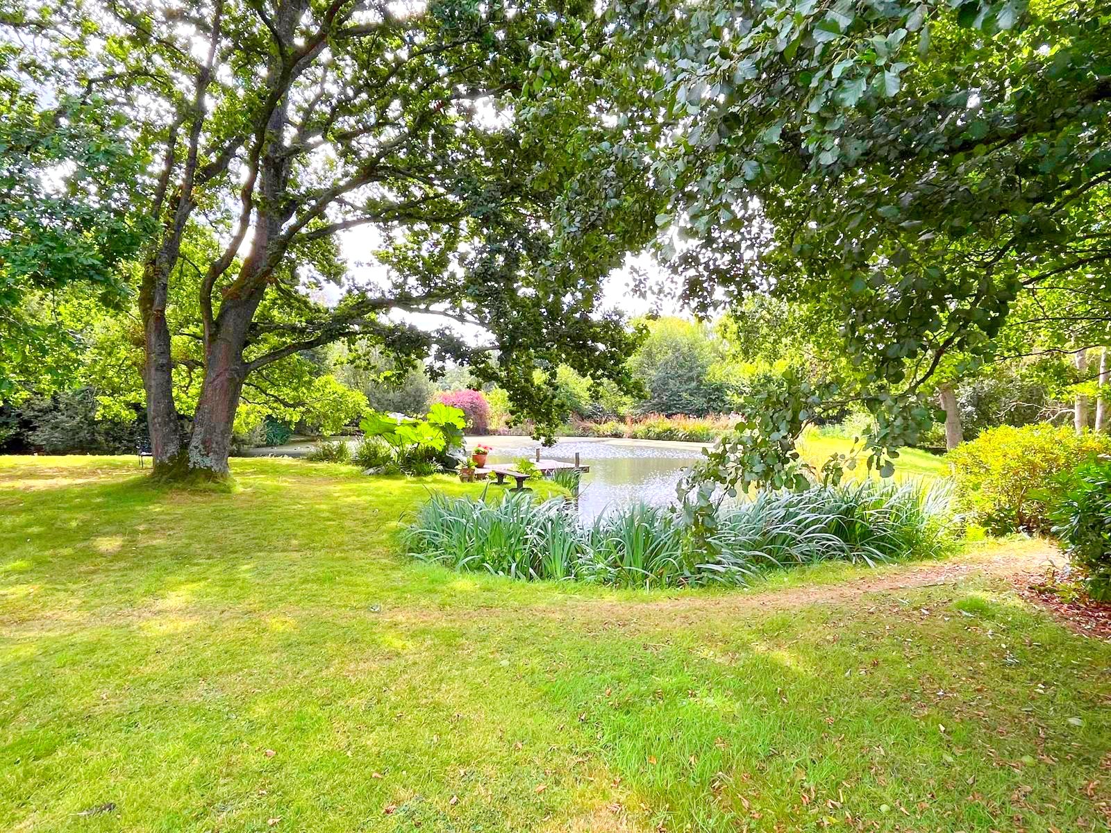 GARDENS OF CIRCA 4.5 ACRES & OUTSIDE AREA: The property is approached via a sweeping gravel driveway that opens to an impressive frontage with ample parking and turning space. The planting and the atmosphere of the garden tends towards the traditional English landscaping design, formally laid out in part with a central gravel pathway, large lawns, architectural hedging, some ‘ondulé’, some pillared; handsome old oak and ash trees, some winding pathways, generously planted flower borders, a structured informality which leads you through to the boating lake, with the lilly pond separately above it, and natural grassland below it.
