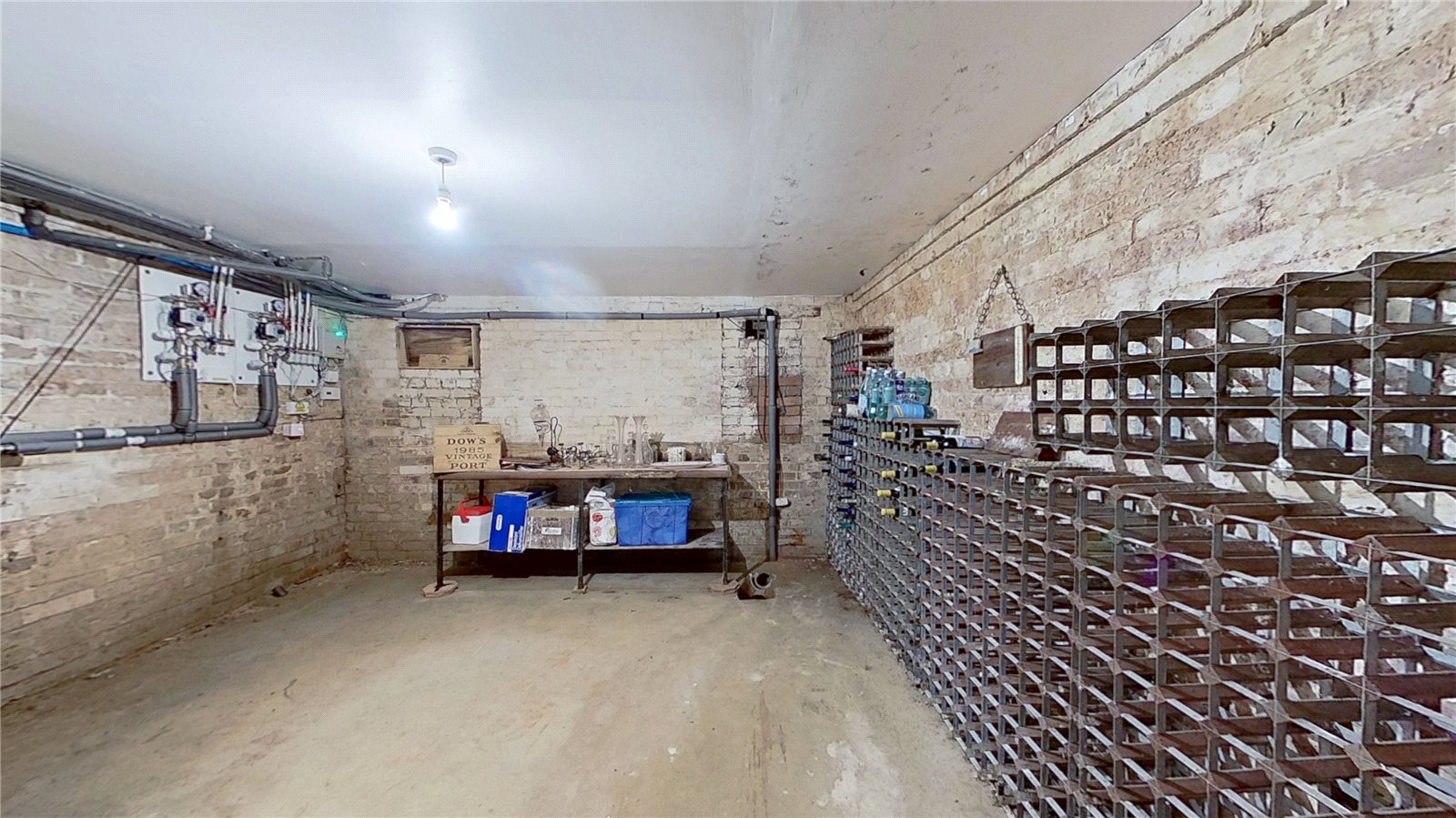 CELLAR: A characterful wine cellar offering excellent storage for a substantial collection. Exposed brick walls and a naturally cool environment provide the perfect conditions for preserving fine wines. Fitted with extensive bottle racking along one wall and ample additional space for shelving or a tasting area, this cellar is both practical and atmospheric — a superb feature for the wine enthusiast.
