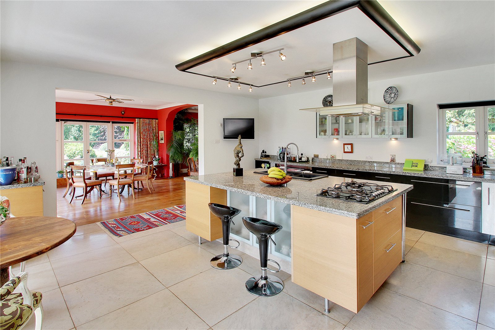 • Striking contemporary kitchen/breakfast room with central island and garden access