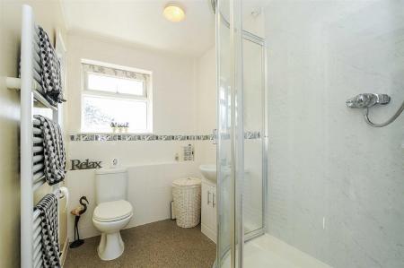 Cloakroom/Bathroom - Suite of panelled bath with shower over, wc and wash basin with built in cupboards.