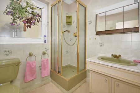 En-Suite Shower Room: UPVC obscure double glazed window to the side. Fitted with coloured suite comprising WC, hand basin set into double doored storage unit with laminate surround. Tiled corner shower cubicle with sliding door. Part tiled walls. Triple mirror doored cabinet.