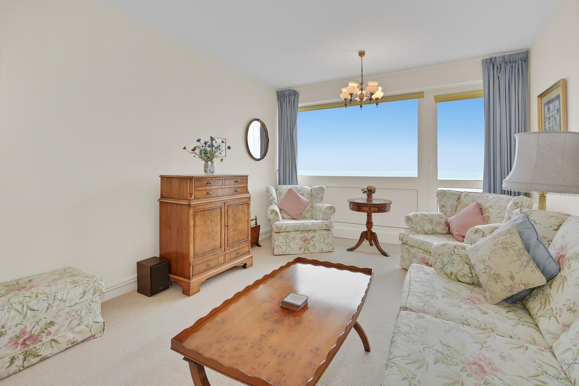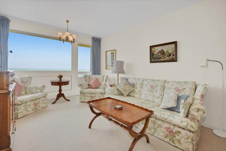 Sitting Room: UPVC double glazed door leading out to south facing balcony and large UPVC picture window alongside, enjoying stunning views over the beach and uninterrupted sea views beyond. TV Point.