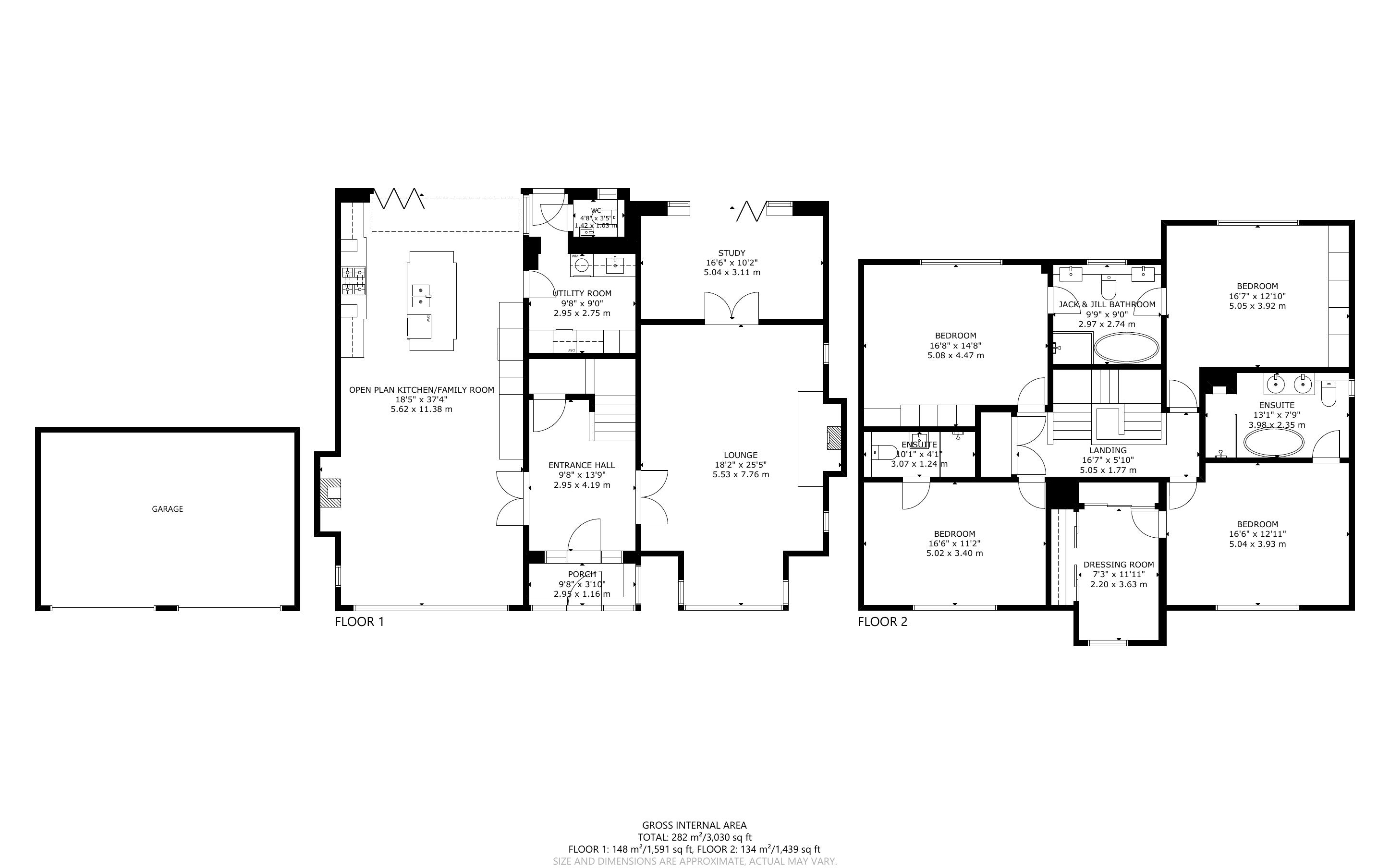 • MAIN BEDROOM ONE HAS BOTH AN ENSUITE BATHROOM / SHOWER ROOM AND ENSUITE DRESSING ROOM