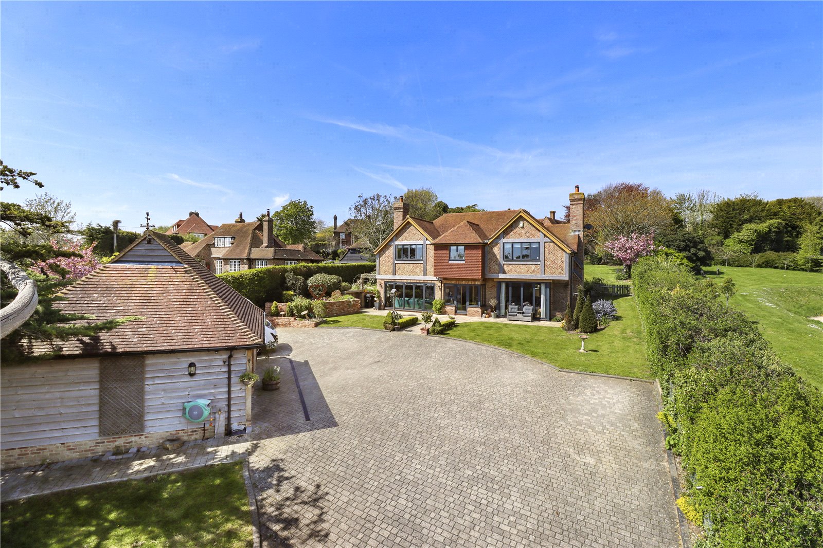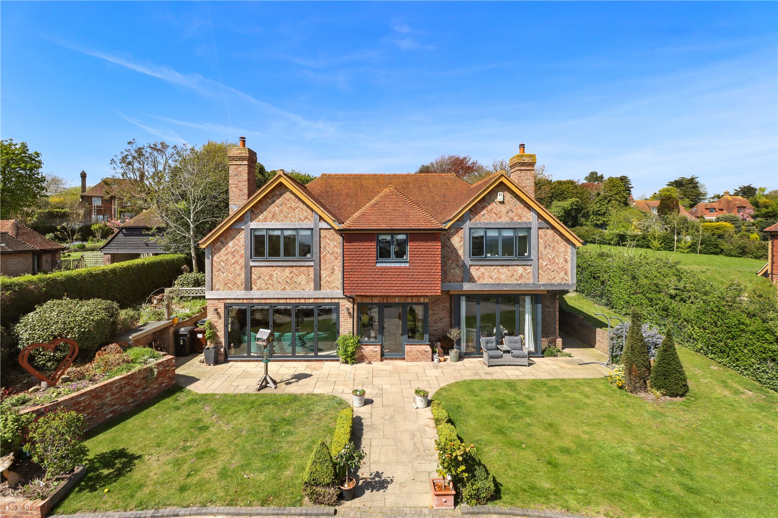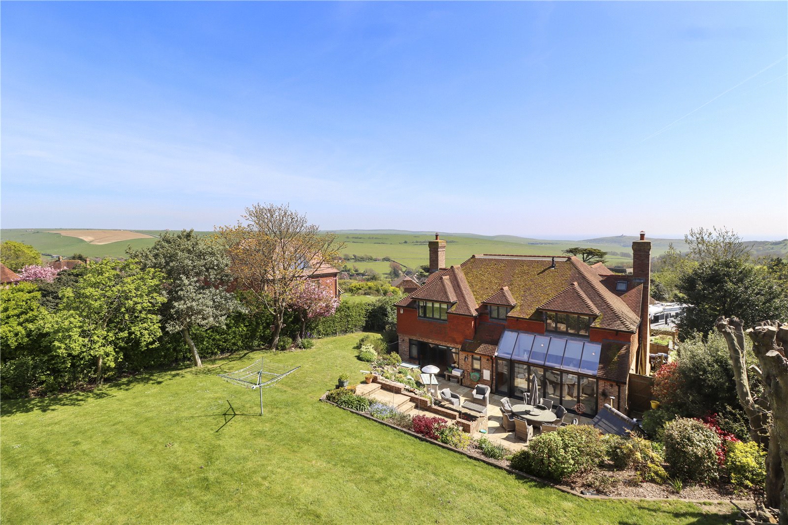 OUTSIDE: This uniquely positioned and impressively built high spec modern bespoke substantial sized family residence, occupies probably one of the finest elevated positions on the edge of Friston and East Dean and benefits from absolutely stunning far reaching panoramic views over to Birling Gap and beyond of the sea.