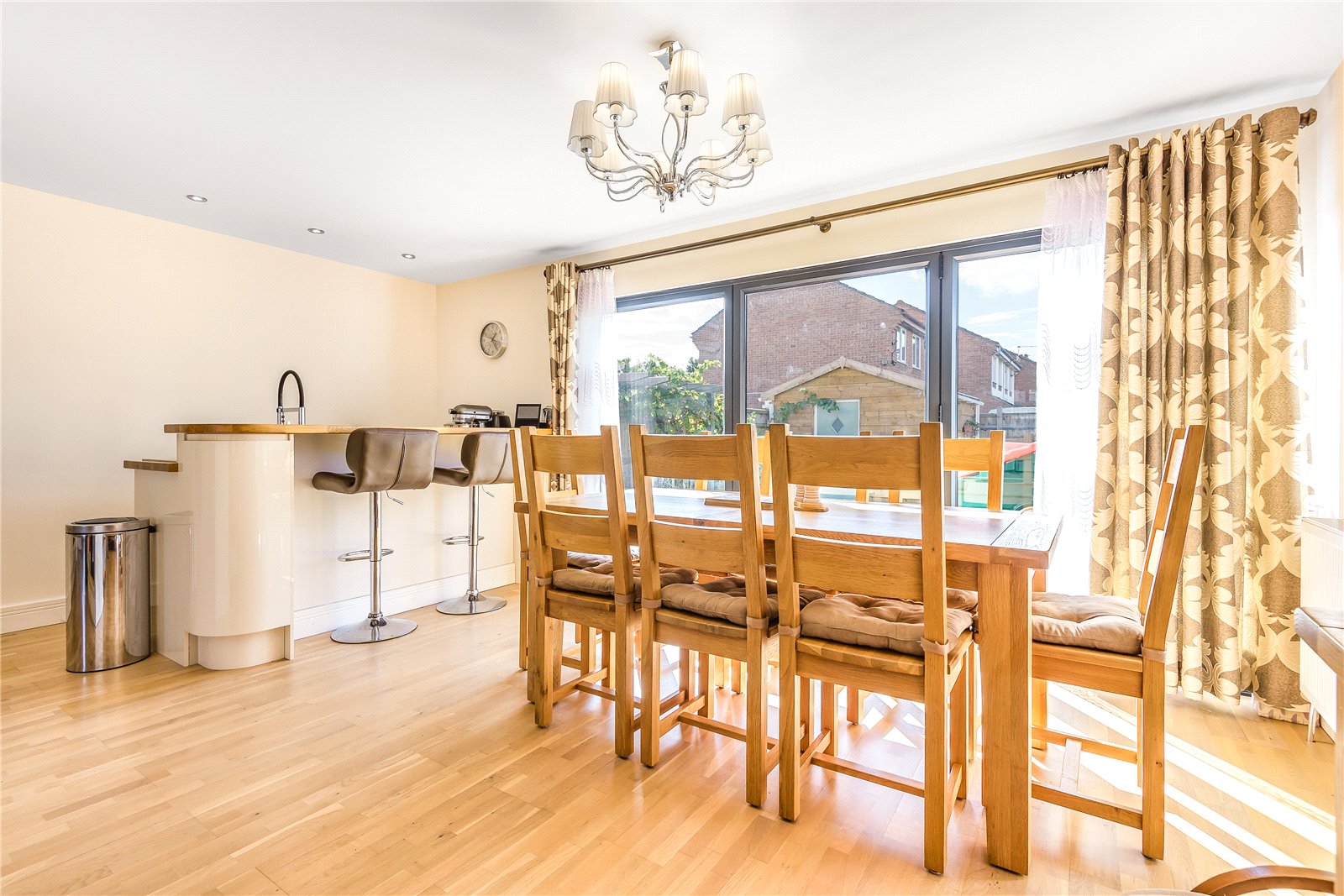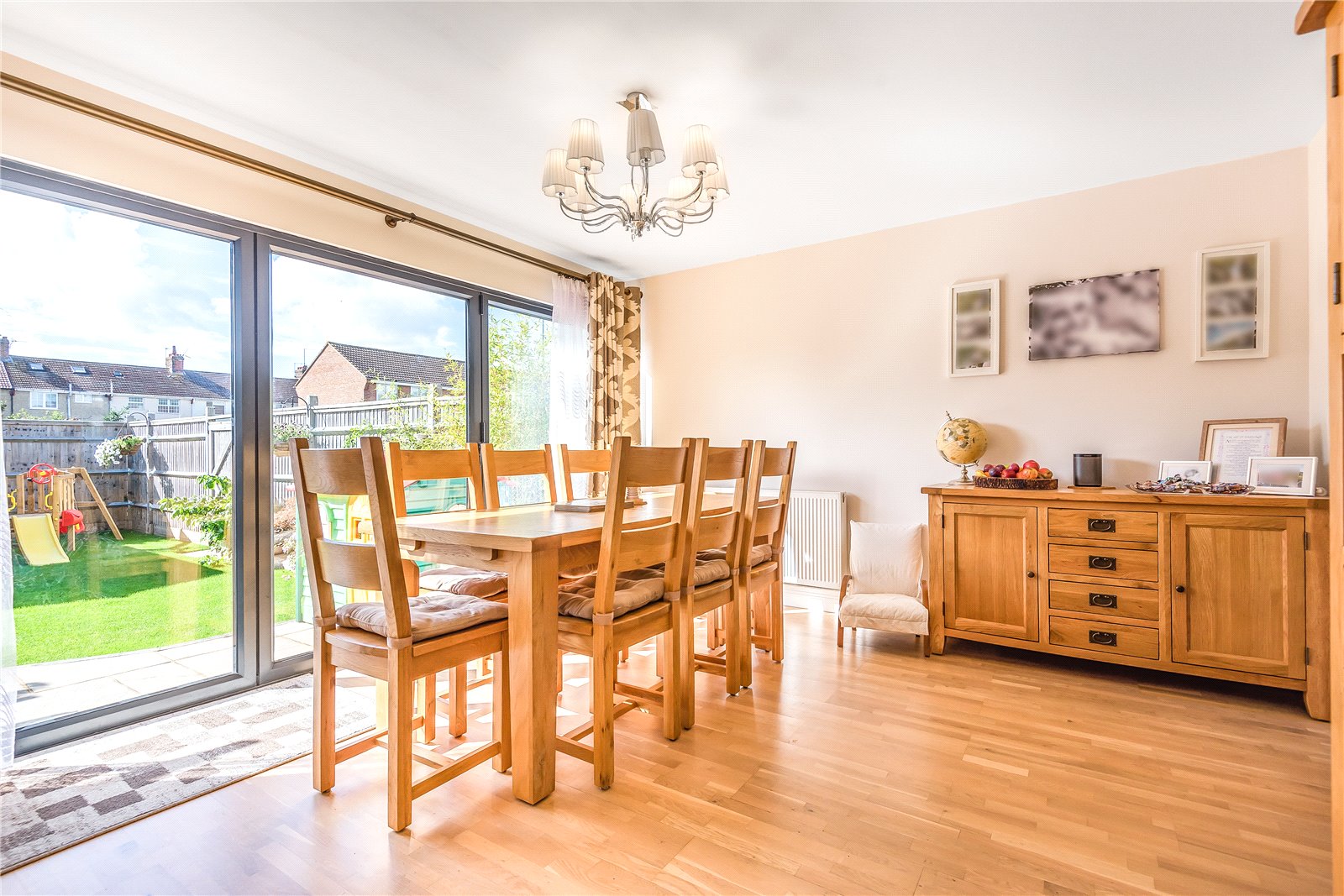 DINING ROOM ( OPEN PLAN ): With attractive light oak flooring, feature central ceiling light, impressive and full length bi-folding double glazed powder coated doors with aspect over rear garden. Open plan area extending to kitchen / breakfast room.