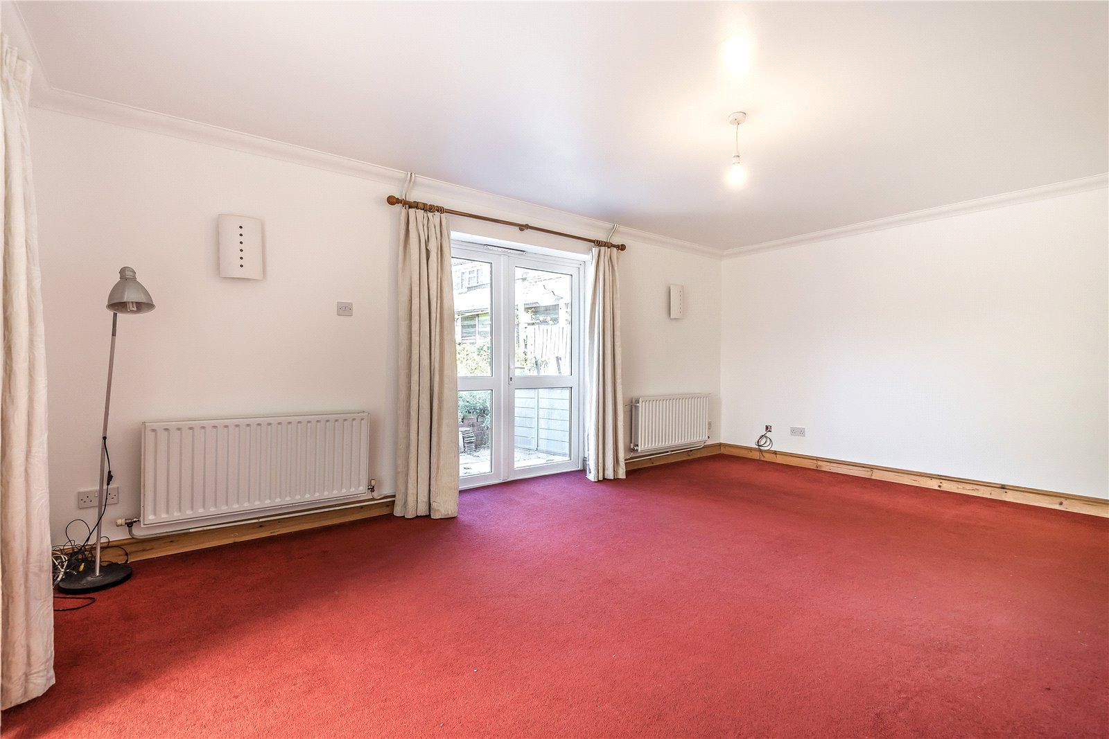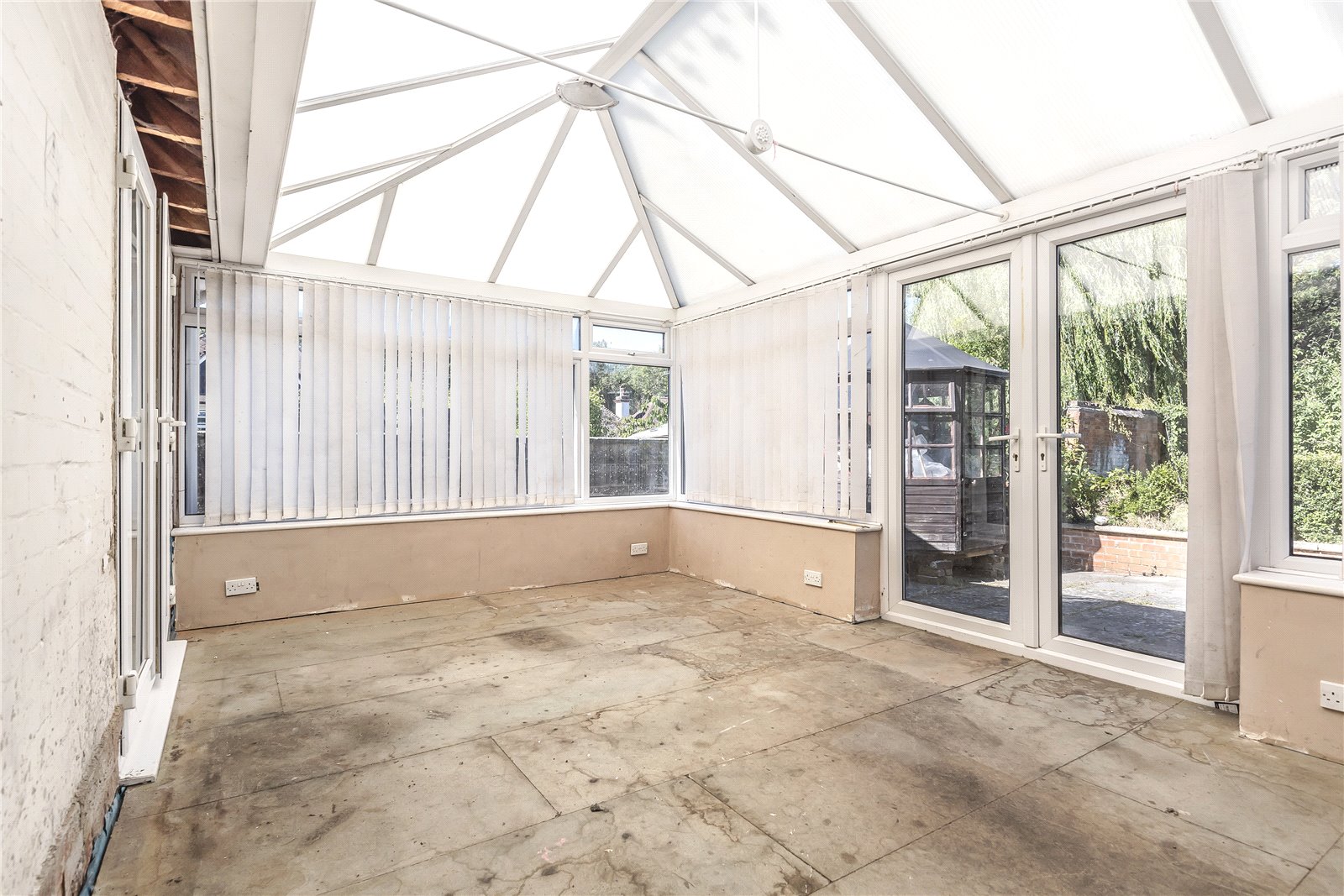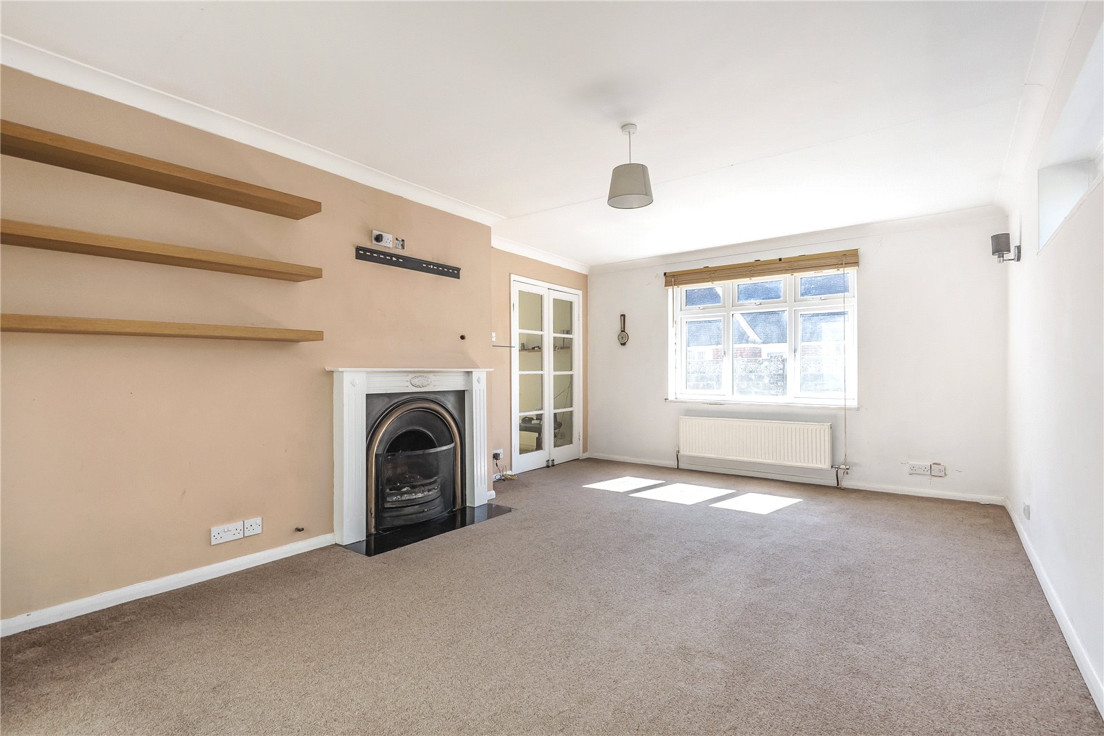 SITTING ROOM (OPEN PLAN): A double aspect room with coved ceiling, two radiators, ceiling light, double glazed French doors leading to rear garden and further French doors leading conservatory.