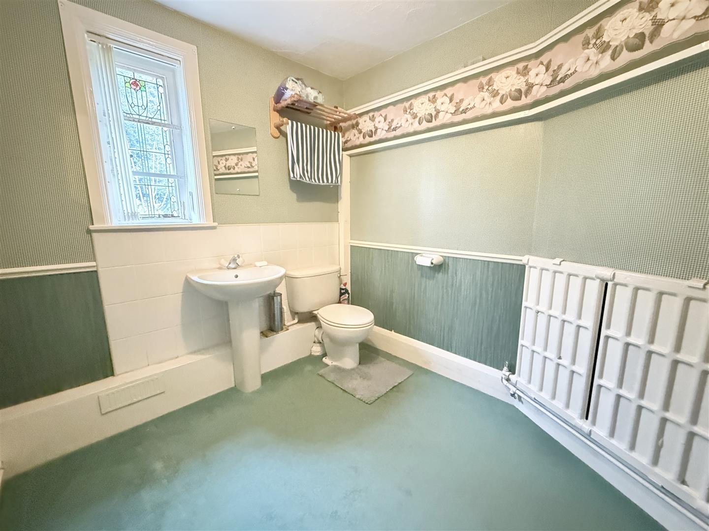 Ground Floor Cloak Room - 2.69m x 2.24m (8'10" x 7'4") - A well proportioned space which would provide ample cloaks hanging space; having a two piece suite comprising close coupled WC and pedestal washbasin; deep skirtings, dado rail and leaded light window to the rear.