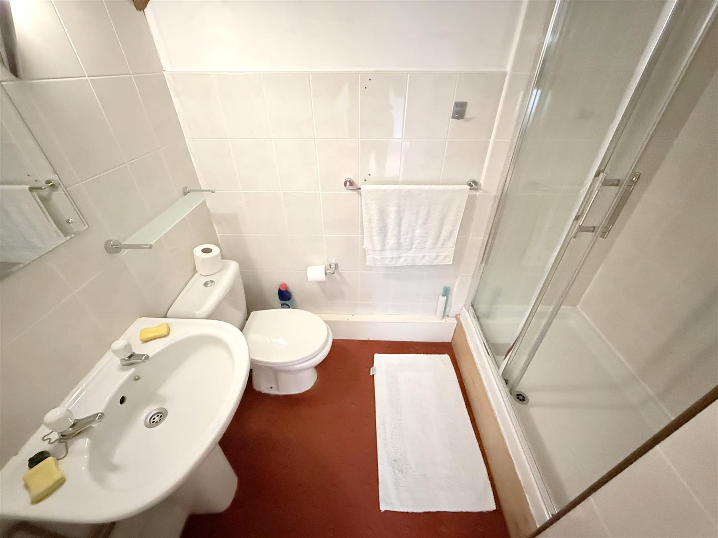 Ensuite Shower Room - 8.28m into shower enclosure x 1.30m (27'2" into sh - Having a suite comprising double width shower enclosure with sliding screen and wall mounted electric shower, close coupled WC and pedestal washbasin with tiled splash backs.
