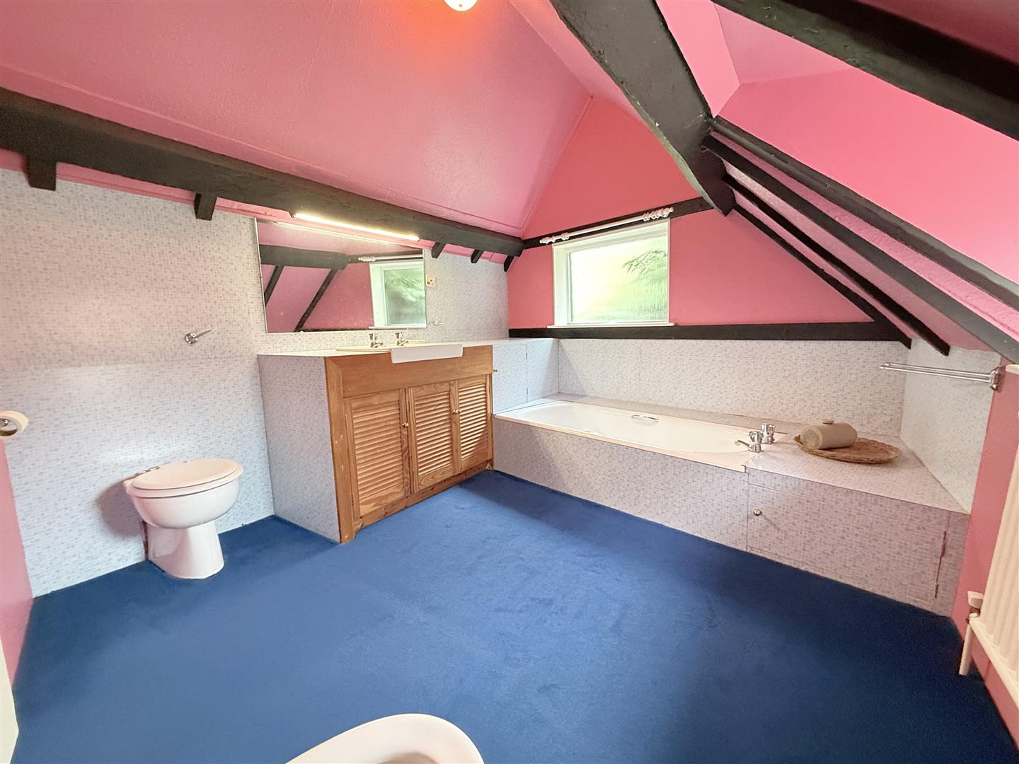 Ensuite Bathroom - 2.92m x 3.28m (9'7" x 10'9") - A well proportioned space which although likely to require updating does benefit from a four piece suite comprising enamelled bath, WC with concealed cistern, bidet and vanity area with inset washbasin with mirrored splash back; exposed timber purlins and obscured glazed windows to both the front and side elevations.