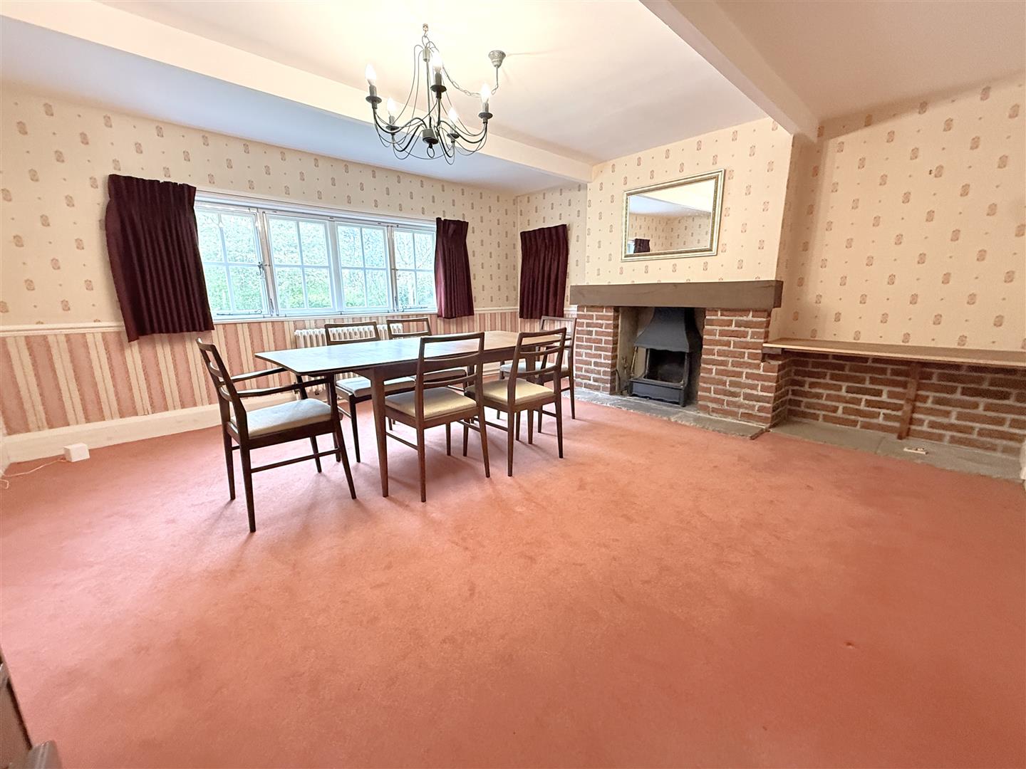 Dining Room - 4.50m x 4.62m (14'9" x 15'2") - A further well proportioned reception currently utilised as formal dining, having a pleasant aspect into the rear garden; chimney breast with exposed brick fireplace, flagged hearth and inset open grate, alcoves to the side, exposed beams to the ceiling, deep skirtings, column radiator and multi paned window.