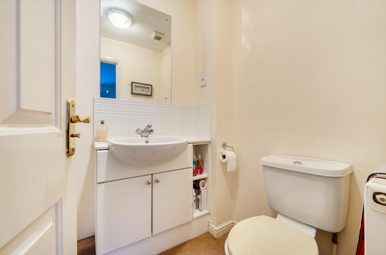 En-Suite: - Walk-in shower cubicle, WC and wash basin with cupboard under.