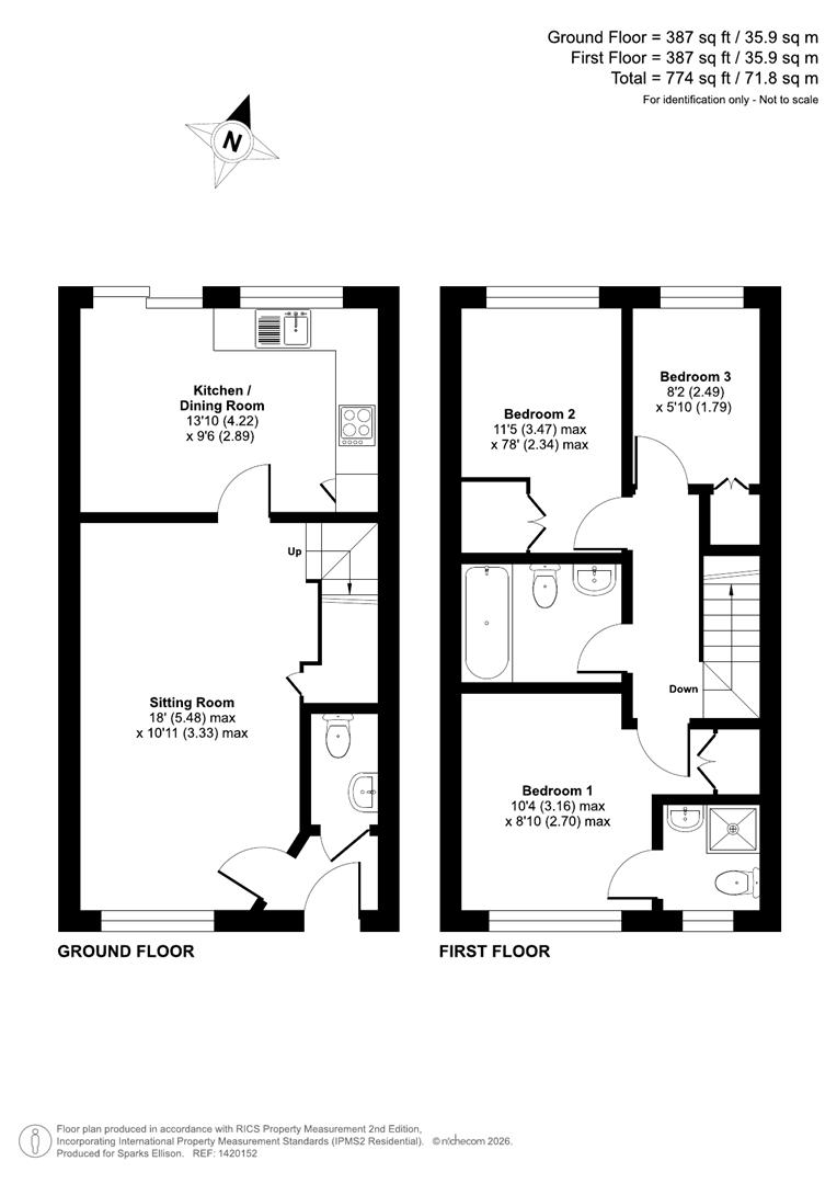 Approximate Area: - 774 sq ft / 71.8 sq m