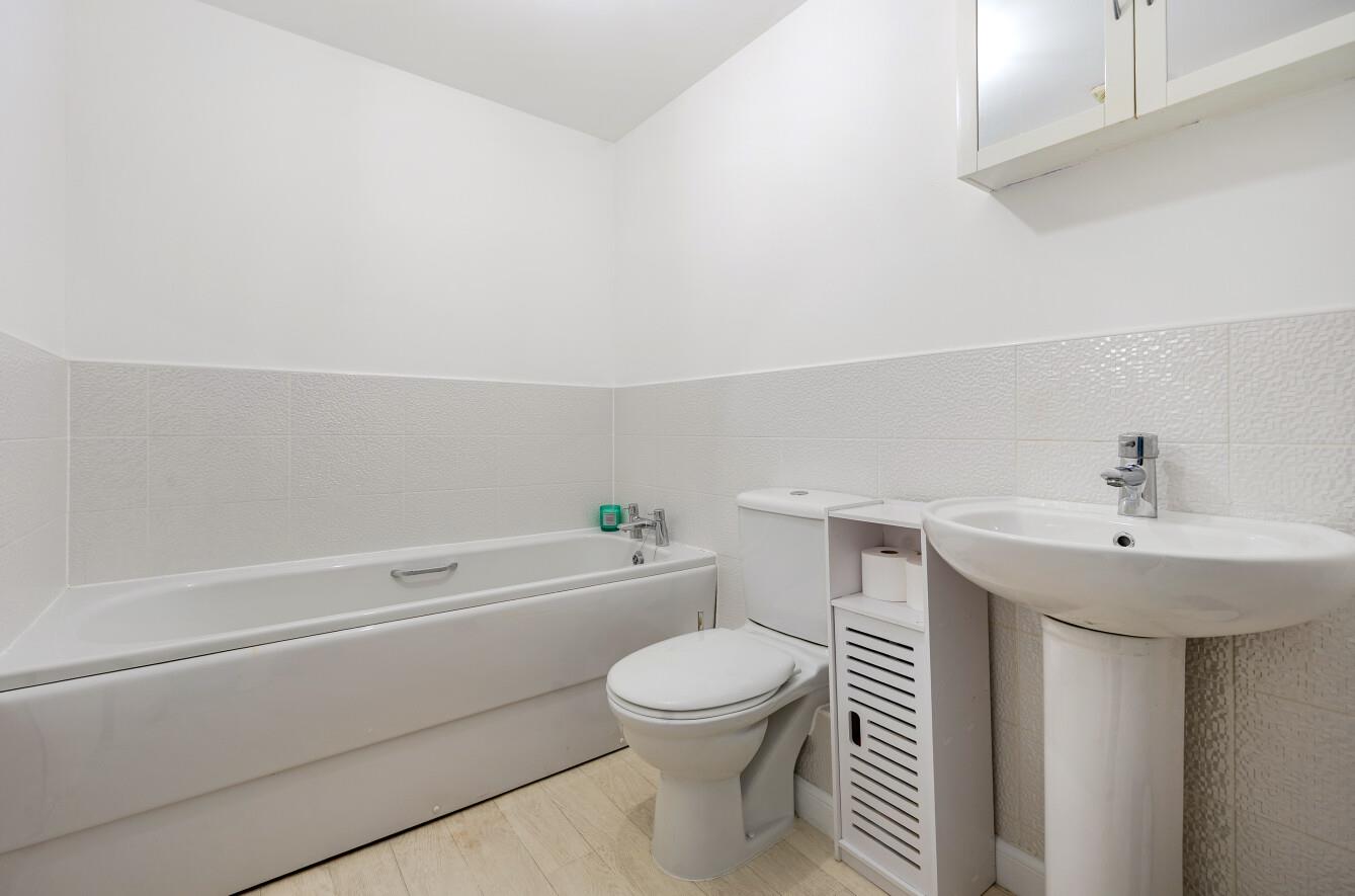 Bathroom: - White suite comprising bath with mixer tap, WC, wash basin, part tiled walls.