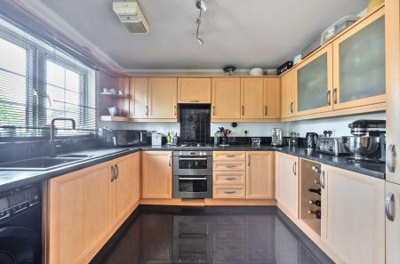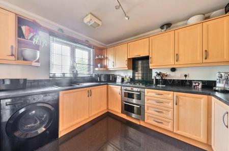Kitchen: - 10'9" x 9'6" (3.27m x 2.89m) Range of units to include integrated fridge freezer, integrated washing machine, integrated dishwasher, electric oven and gas hob with extractor hood, built in storage cupboard accommodating boiler.