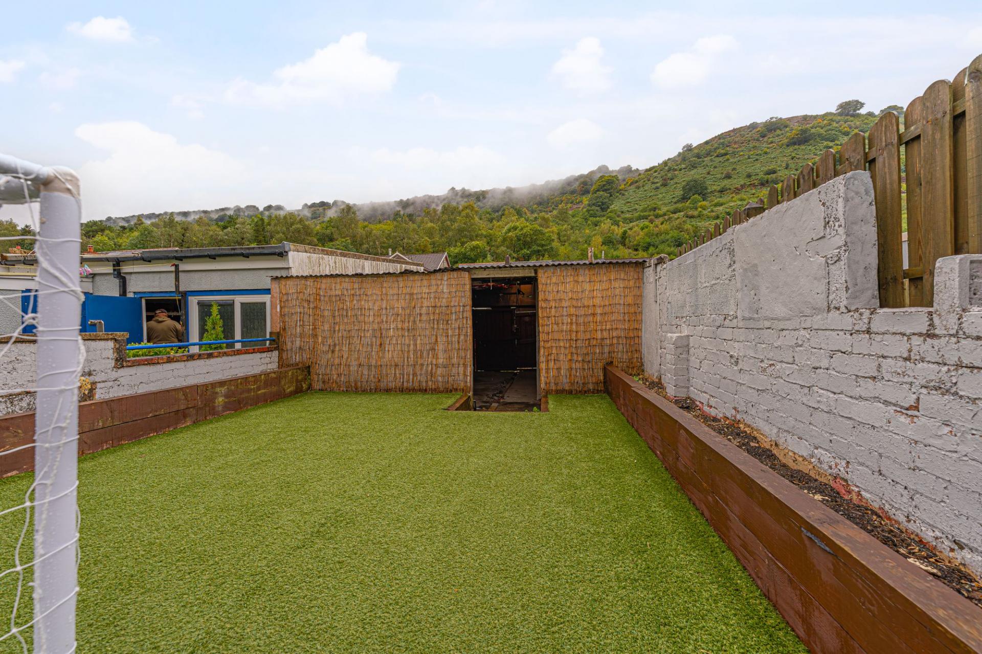 Stepping outside we have the rear garden, comprising of a patio connected to the house and a low maintenance turf lawn beyond, offering great space for residents to unwind, and breath-taking views of the surrounding landscape in the background. The property also features a sizeable garage, which opens up to a lane for convenient parking and easy storage options, while on-road parking is also available to the front of the property.