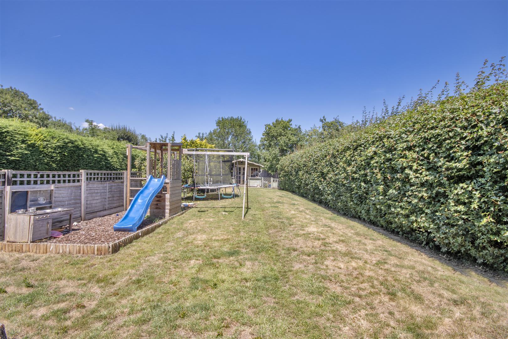 . The 120ft rear garden is mostly laid to lawn and level. With mature hedge borders offering privacy with a child friendly play area, summer house and space behind the summer house that could lend itself to create a larger garden, build a home office (subject to planning) or put a vegetable patch in.