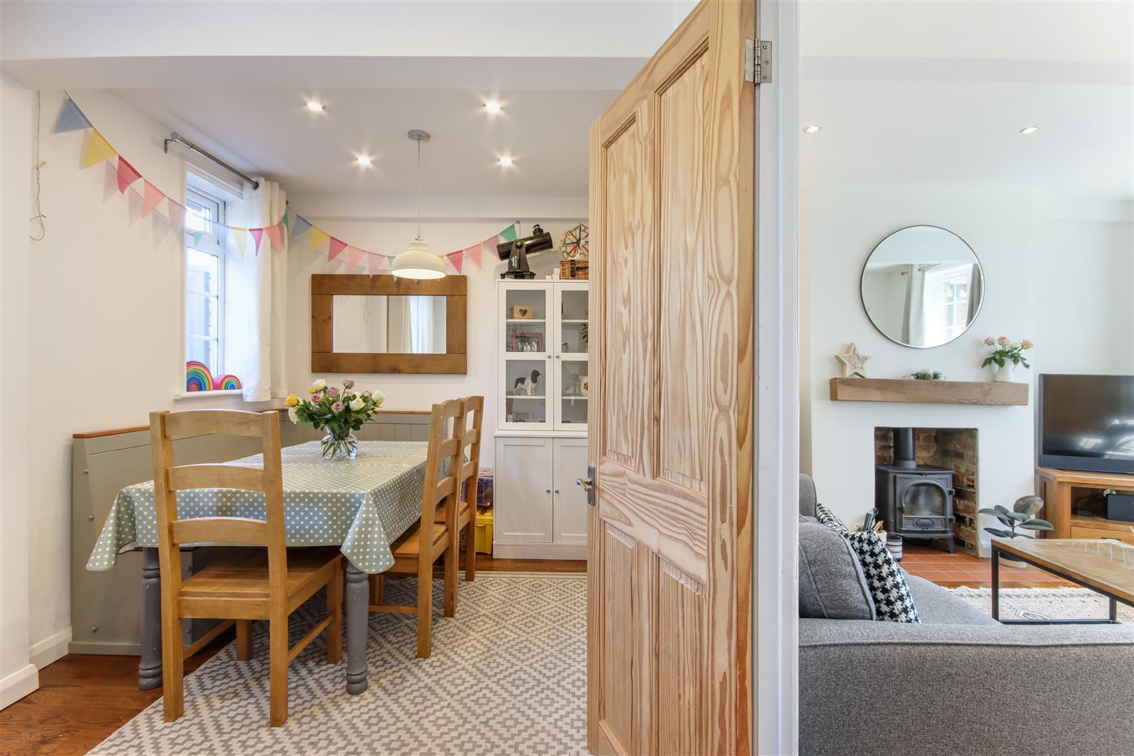 . Dining room with outlook to the rear over garden, continuation of engineered oak flooring.
