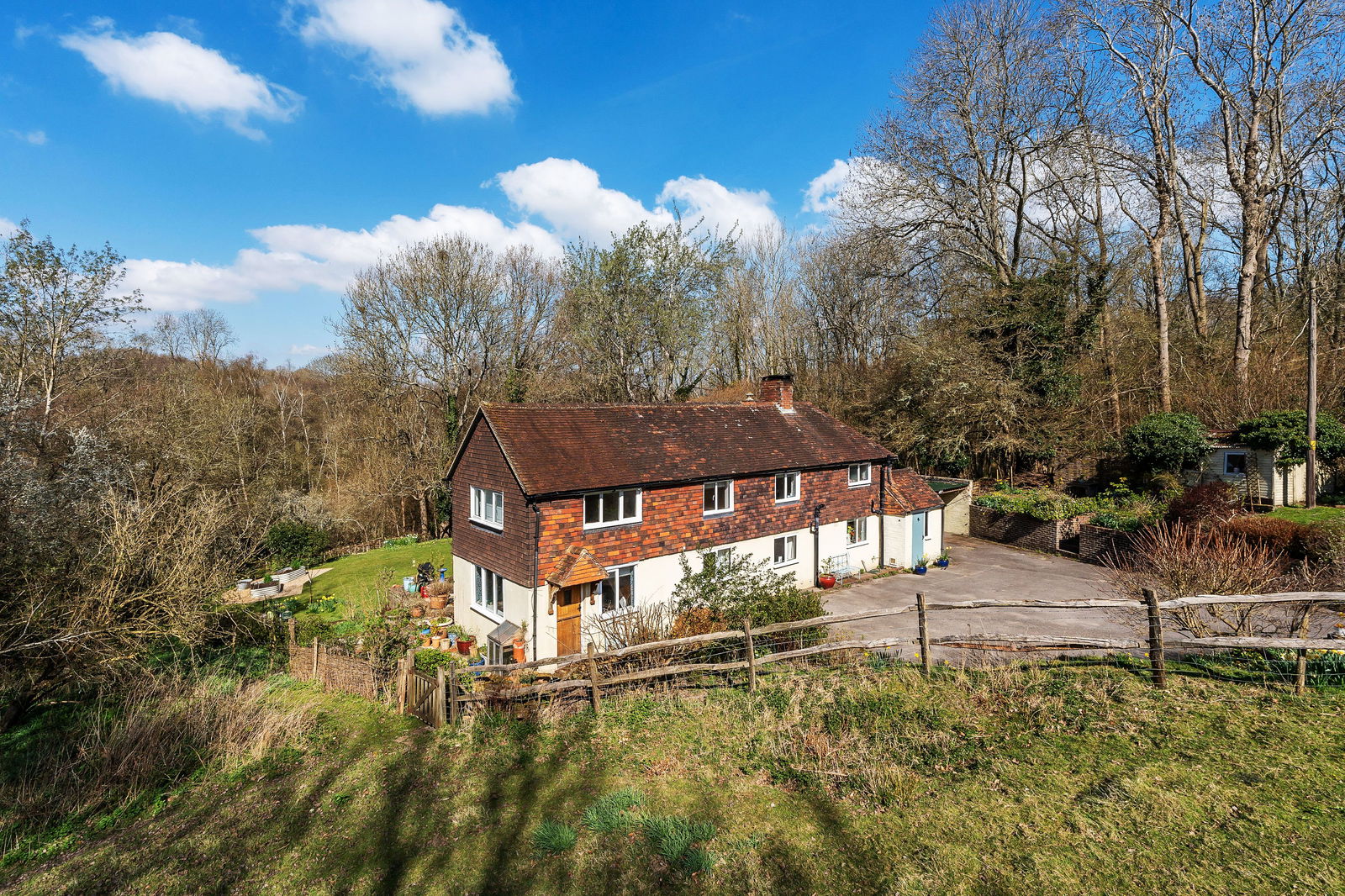 The cottage can be found at the end of a private lane, set away from neighbouring properties. There are delightful views over its own gardens and the adjacent wildlife area, a Site of Special Scientific Interest (SSSI), designated to protect its natural features and heritage. The property, however, is not isolated as the traditional market town of Edenbridge is just 2 miles away, offering shopping facilities including a Waitrose. There are a wide variety of sporting facilities in the area including Edenbridge leisure centre, golf at Tandridge and the renowned racecourse at Lingfield. Edenbridge benefits from 2 mainline train stations. Hever station (just over 1 mile) and Cowden station (just over 2 miles) also have links to central London. The M25 can be accessed at junction 6 at Godstone, and for international travel, Gatwick airport is approximately 15 miles away.