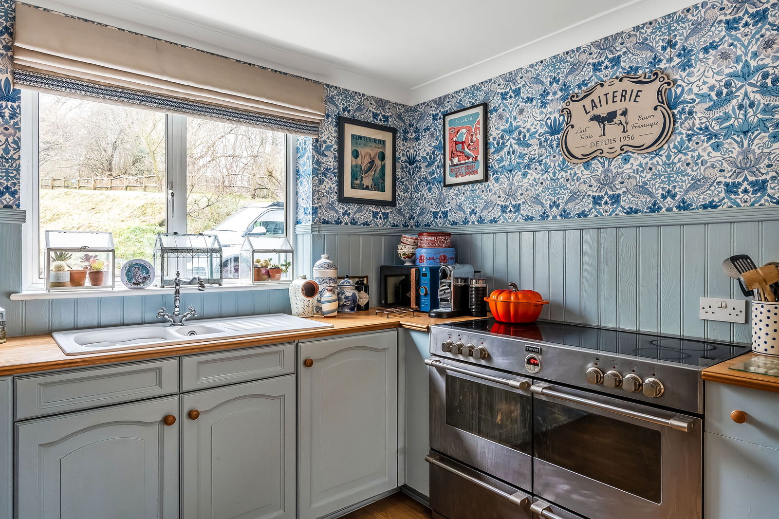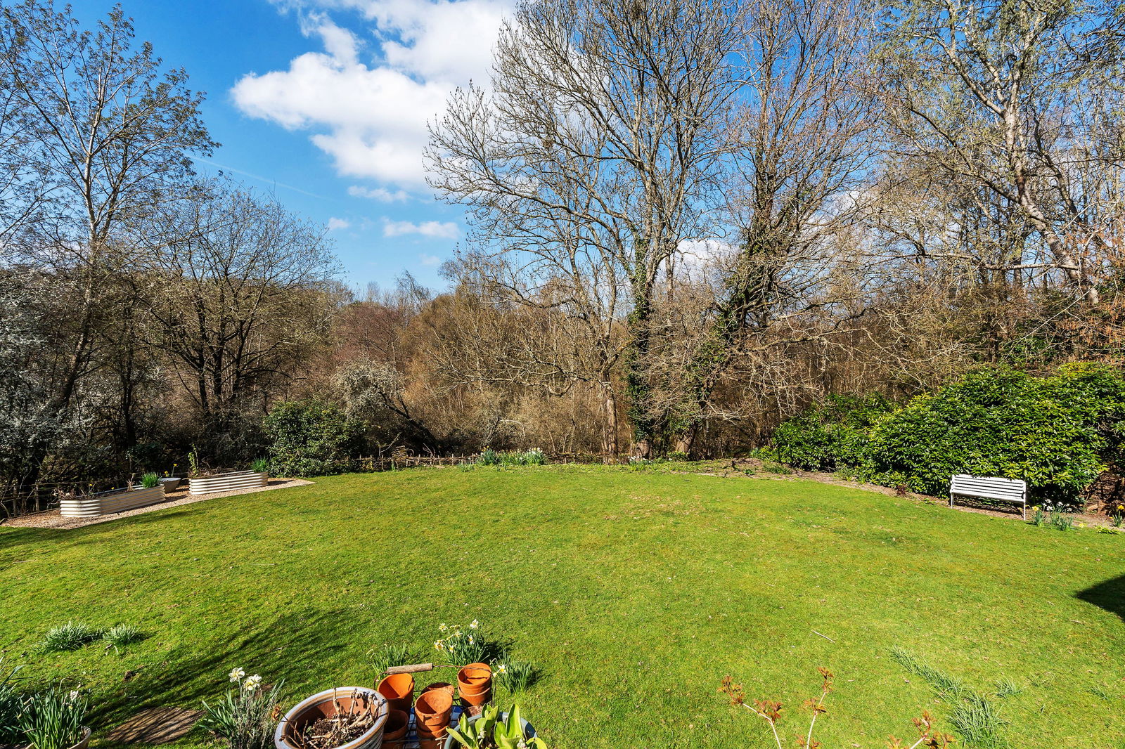 -Gardens directly adjoin acres of wildlife meadow and woodland, enjoying superb views over the countryside.