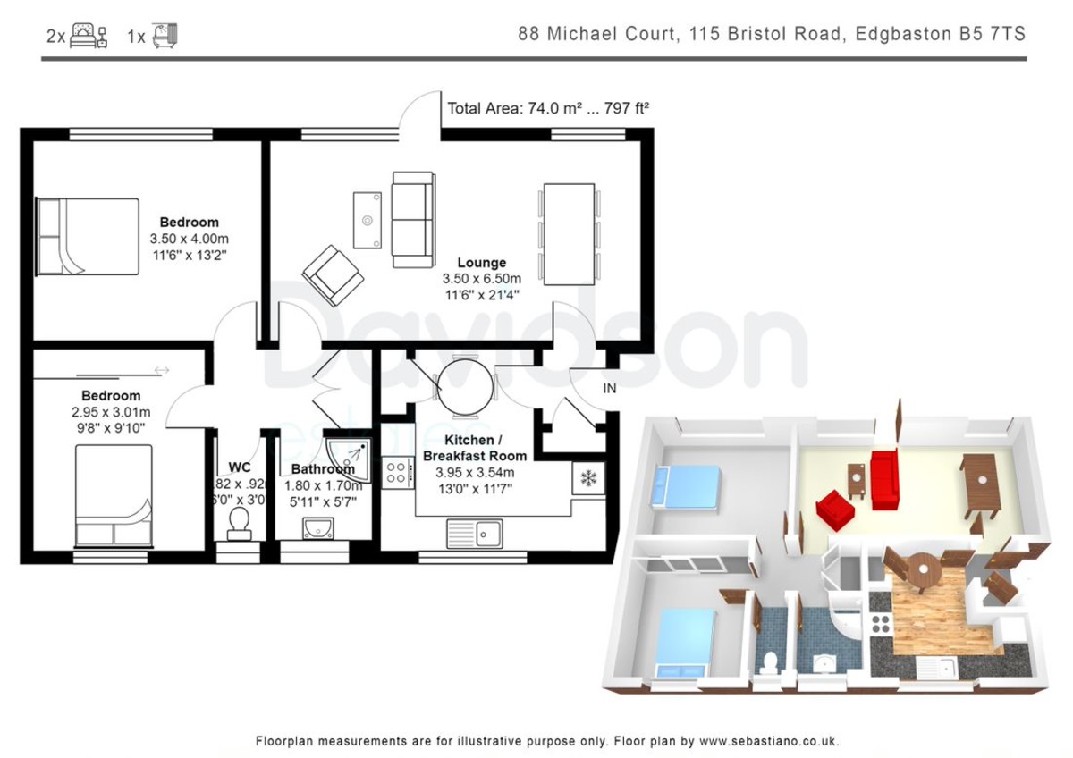 - Two bedrooms
