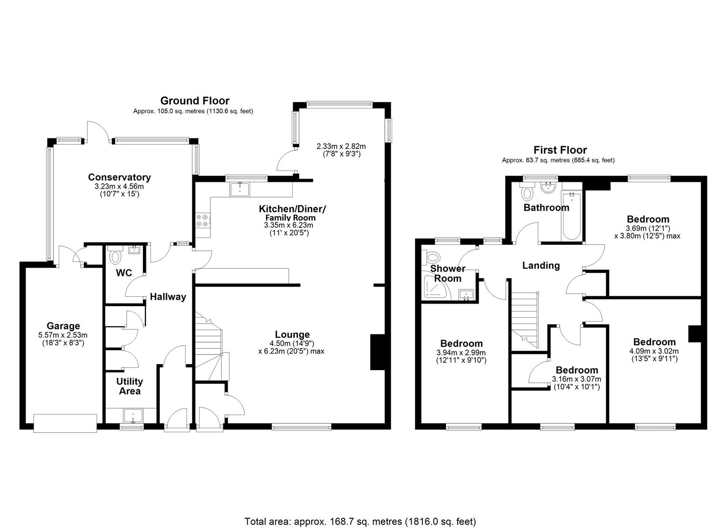 Turned stairs from the lounge rise to a first floor Landing, having built-in Airing cupboard.