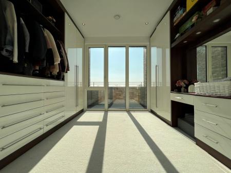 The master bedroom is complemented by a beautifully finished en-suite shower room. There are two further double bedrooms, one of which benefits from access to the second south-facing balcony and is currently used as a childs nursery, while the third has been thoughtfully converted into a luxurious walk-in wardrobe. A contemporary family bathroom completes the internal accommodation.
