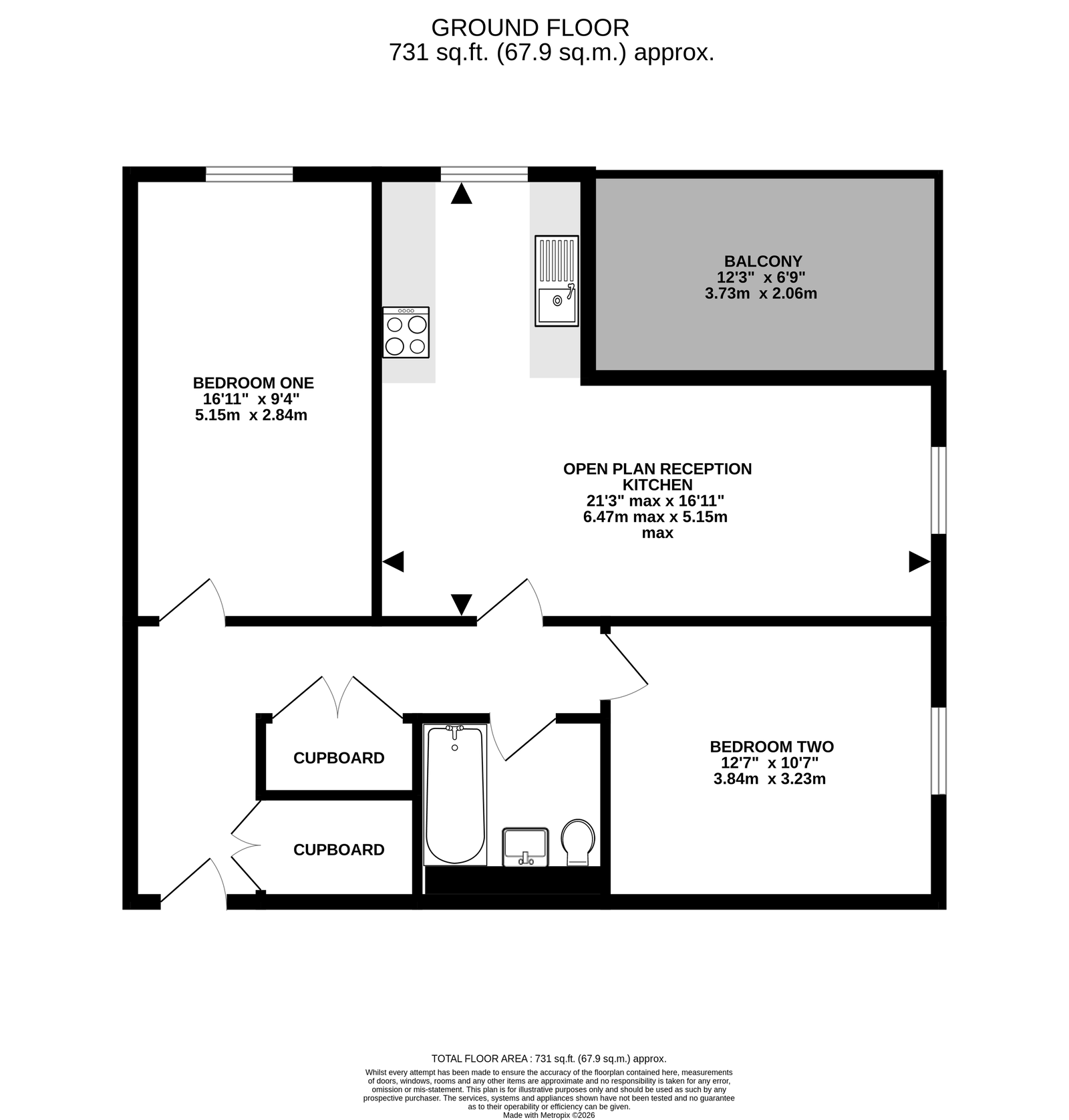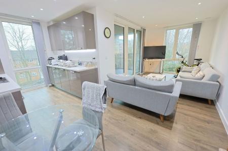 Accommodation offers Two Double Bedrooms, L Shaped Open-Plan Kitchen/Reception Room open to Balcony, Utility Cupboard and Family Bathroom.