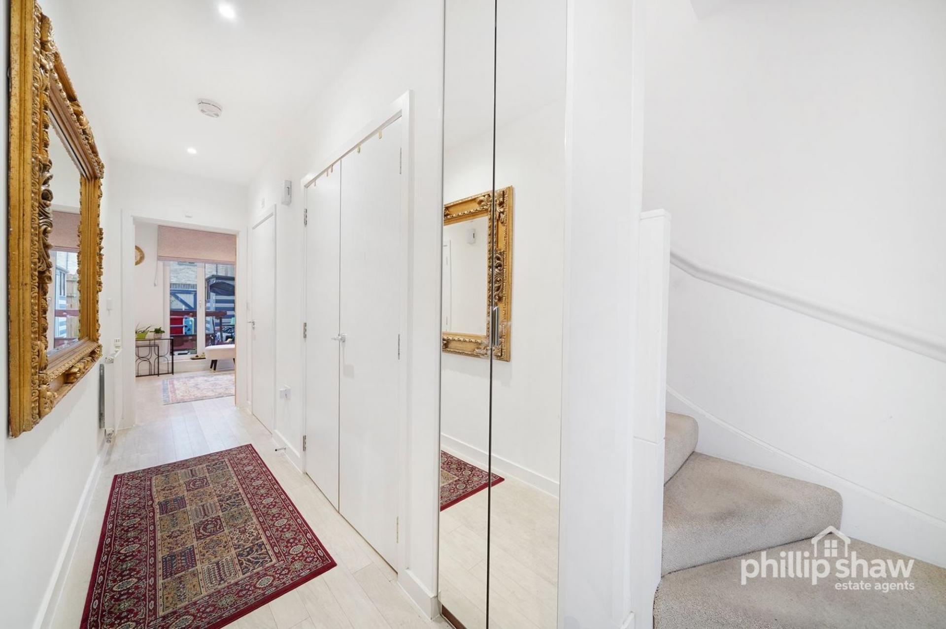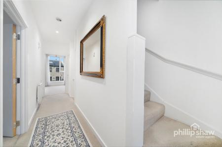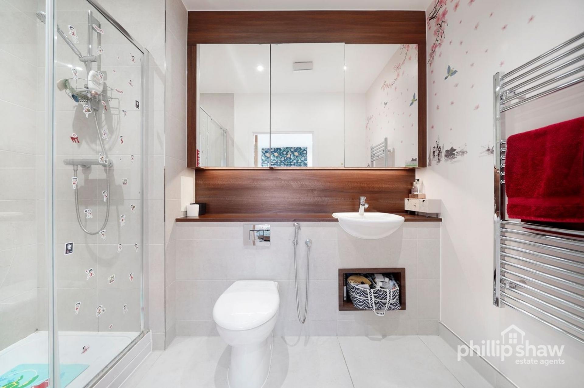 On the first floor, the property features a bright and generously sized reception room, providing a comfortable main living space. A well-proportioned double bedroom is also located on this floor, served by a contemporary en-suite shower room, making it ideal for guests or older children. Additional storage cupboards are also located on this floor.
