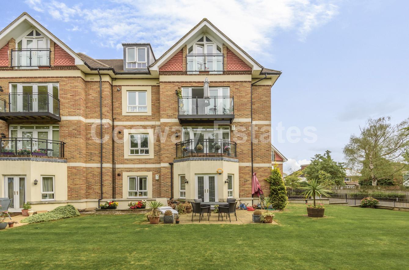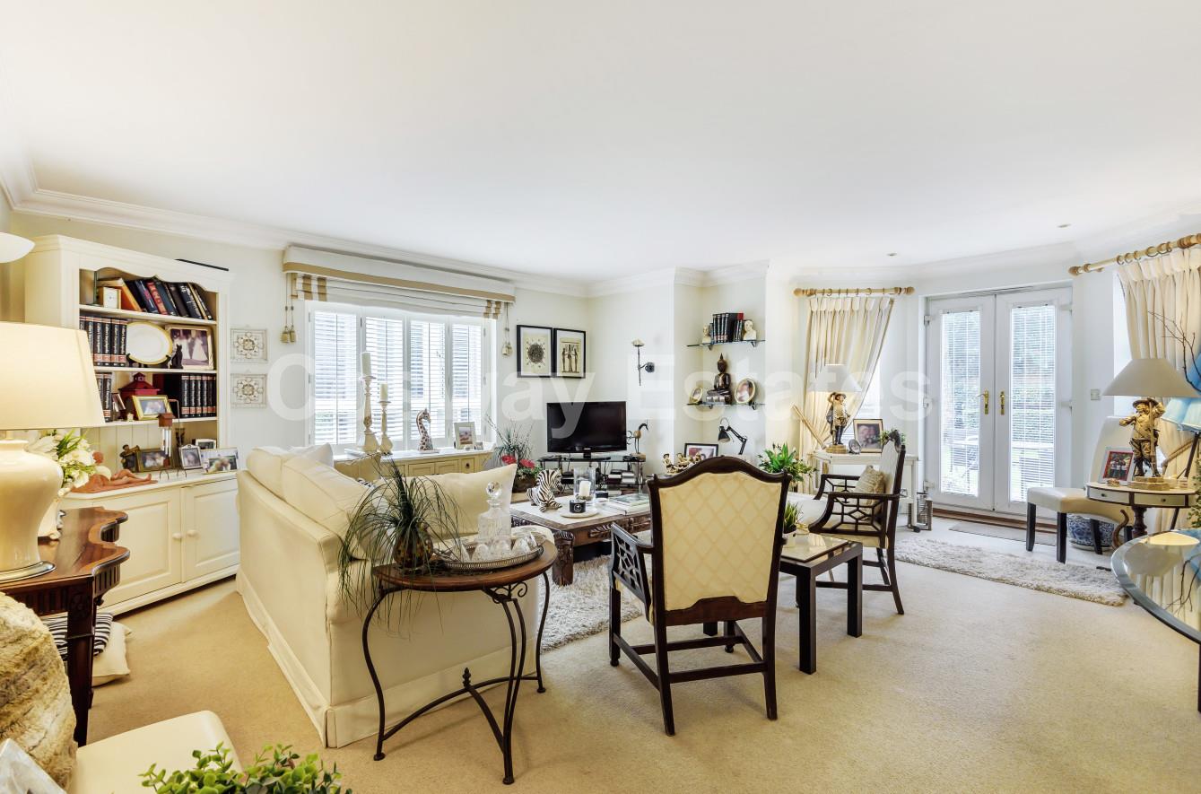 Rarely available is this bright and spacious apartment which offers very generous living. In addition to two double bedrooms, Two bathrooms (1 en-suite) a separate eat in kitchen. A spacious reception room with direct access to the gardens. The apartment has underground parking with a lift to the ground level where the apartment is located.