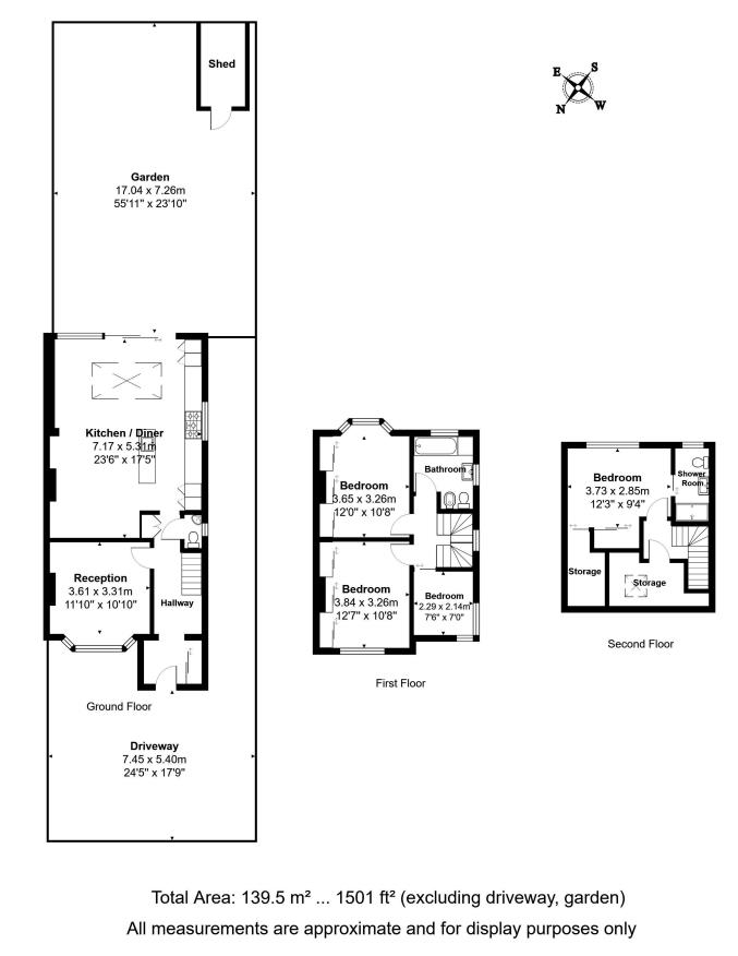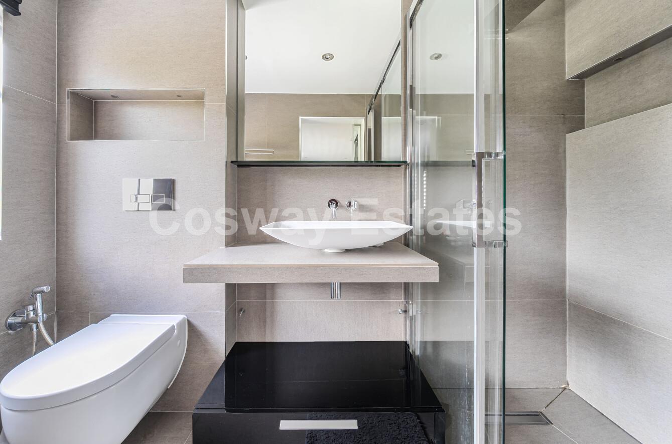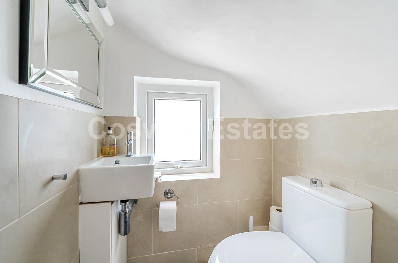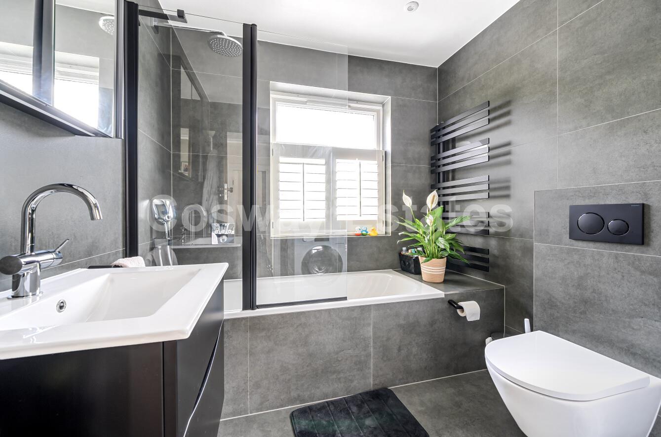 Upstairs, the first floor hosts three well-proportioned bedrooms and a sleek family bathroom. The top floor is home to a large principal bedroom complete with an en-suite, creating a peaceful and private retreat.