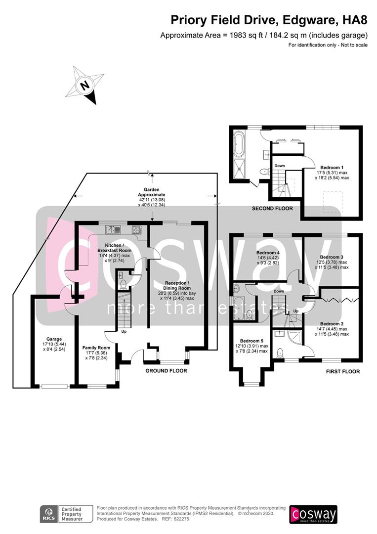 Edgware/Mill Hill Borders - An impressive five bedroom, three bathroom detached property situated in a sought after prime residential road in Edgware, with easy access to both Edgware and Mill Hill's transport links, shops, places of worship and popular local schools. The property is in immaculate condition throughout and consists of guest cloakroom, three reception rooms, large fitted kitchen/breakfast room, south facing garden and garage. Priory Field Drive is within approximately 3/4 of a mile of Edgware (Northern Line) Station and is within the Edgware Eruv. Mill Hill's Thameslink Station is approximately 1 mile away. Viewing Highly Recommended. SOLE AGENT